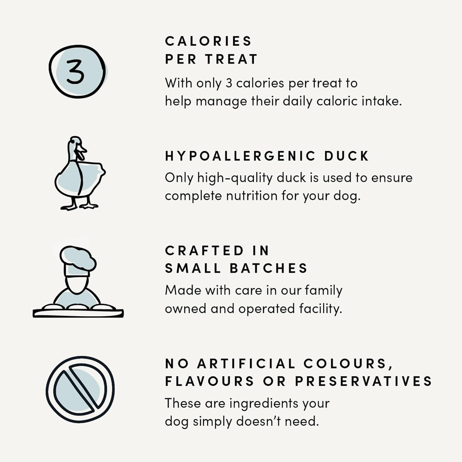 Introducing our new Duck Semi-Moist Mini Trainer. With a new hypoallergenic protein option and only 3 calories per treat, it makes a great alternative in your training treats.