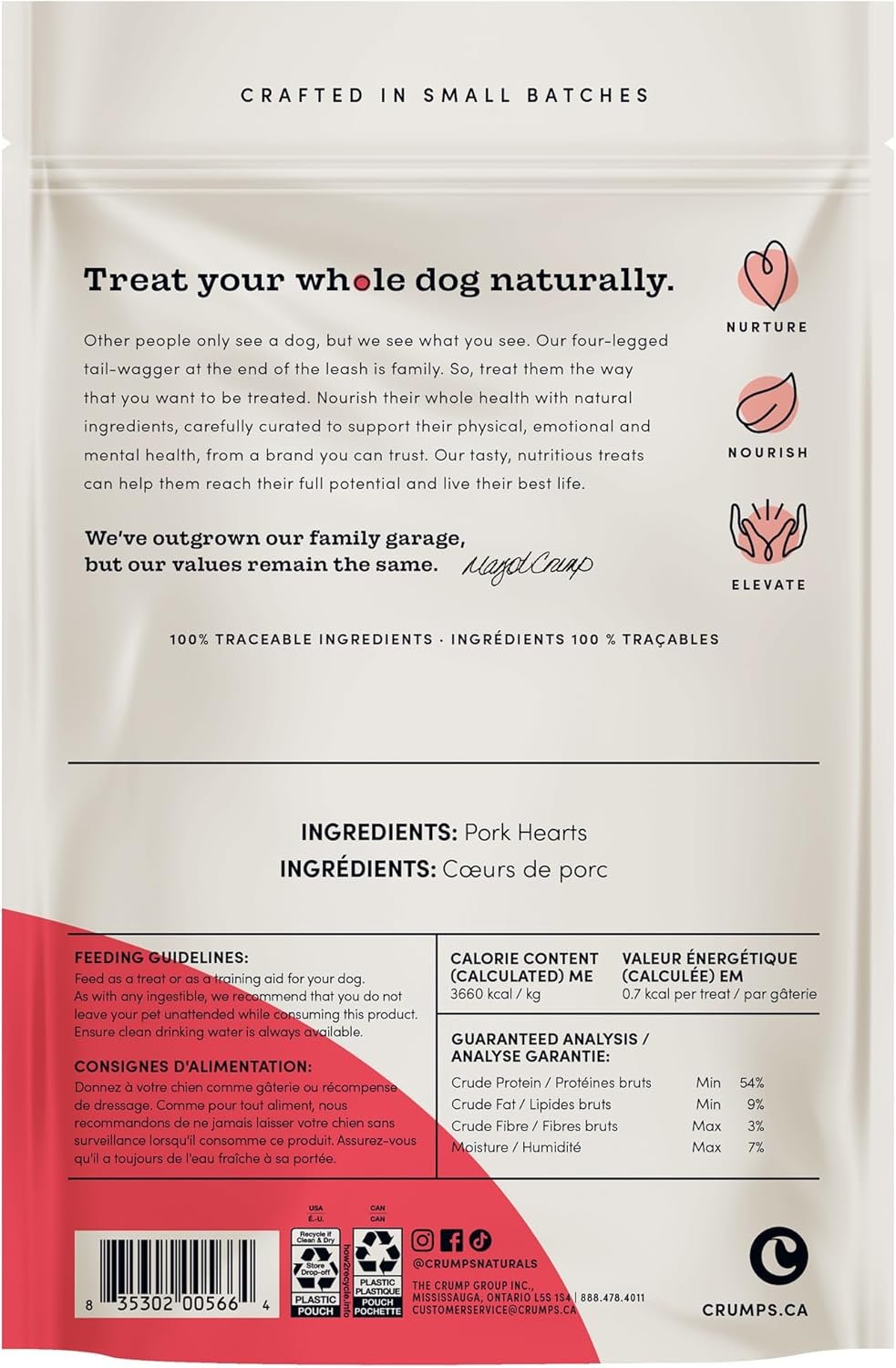 Crumps Naturals Mini Trainers Freeze Dried Pork Hearts 1.9oz, Dog Treats