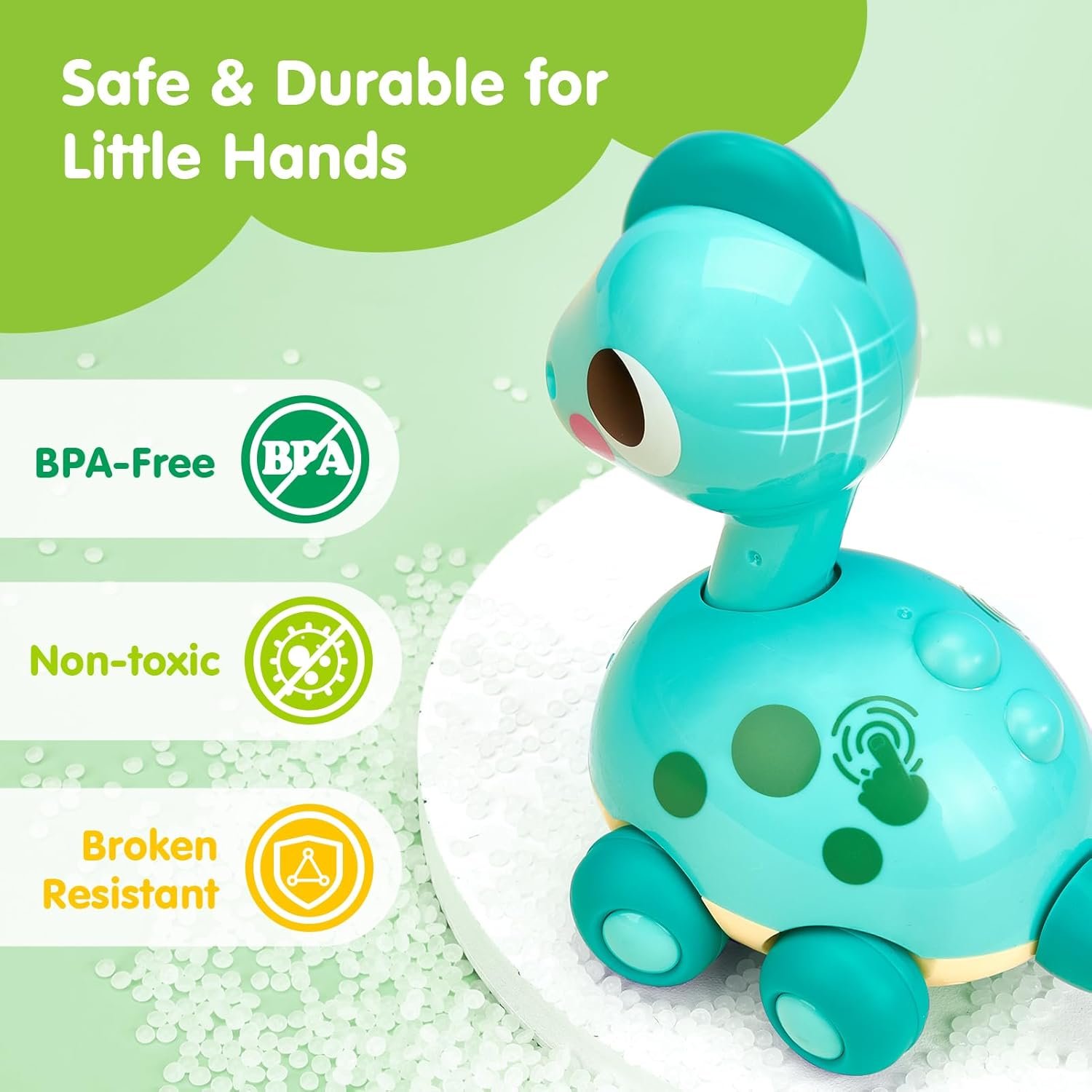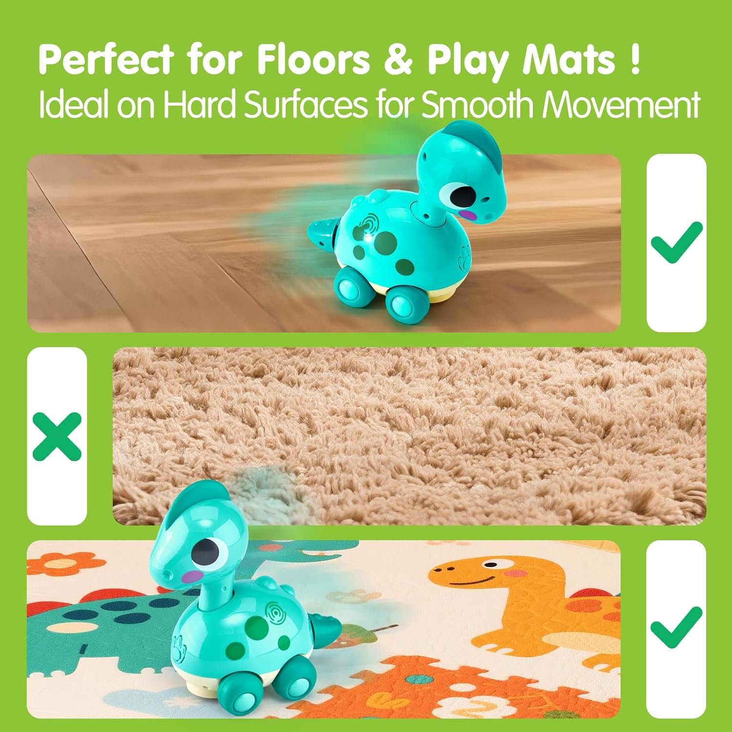 🦖【Encourage Crawling Adventures】Activate our dino buddy with a touch sensor, making it move, nod, and serenade your baby with delightful roars and tunes. Engage your little one, boost their motor skills, and watch them eagerly crawl after their new friend.