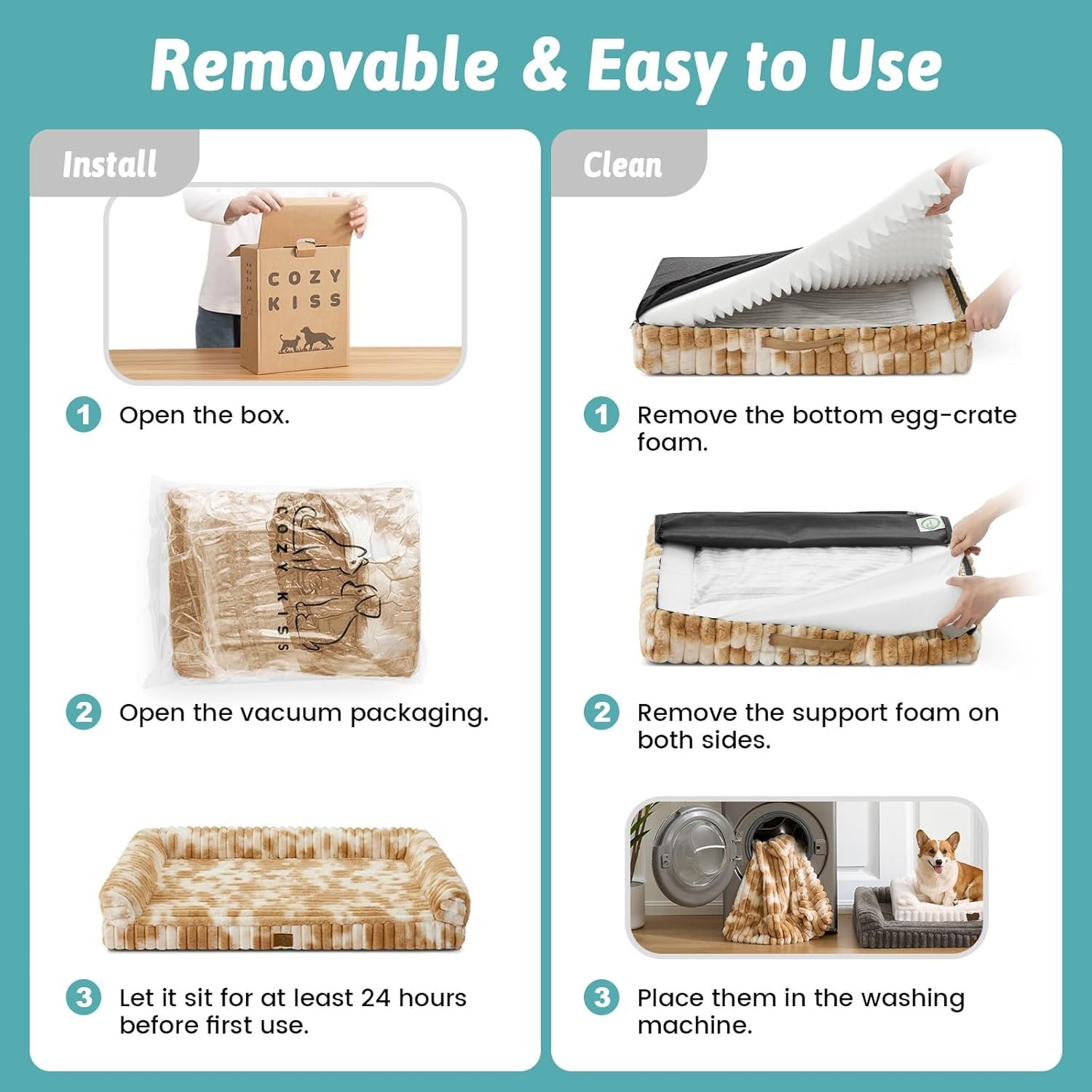 Superior Orthopedic Support Dod bed: High-density foam combined with egg-crate foam ensures optimal pressure relief and joint support, dog bed with sides evenly distributing weight for restful sleep.