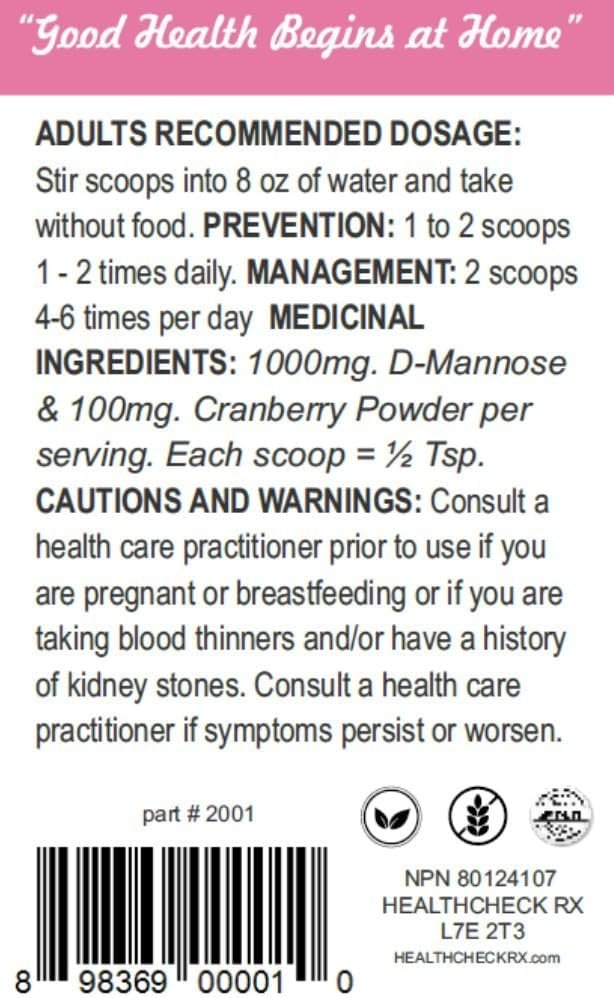 HealthCheckRX UTI Cleanse Powder (50 Servings) — D-Mannose & Cranberry Powder to Support Urinary Tract Health — Naturally Flush the Bladder and Urinary Tract – UTI Avoidance – Supports Healthy Management of Urinary Tract Infections