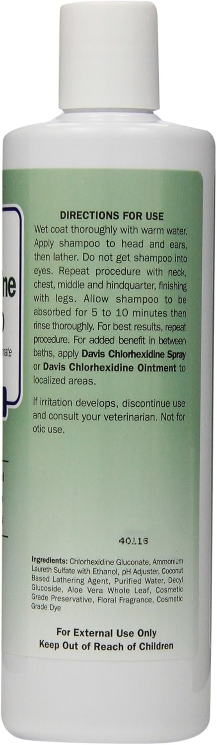 Davis Chlorhexidine Shampoo works to soothe skin irritations, cool inflamed skin and combat skin conditions that are associated with bacteria and a wide range of microorganisms.