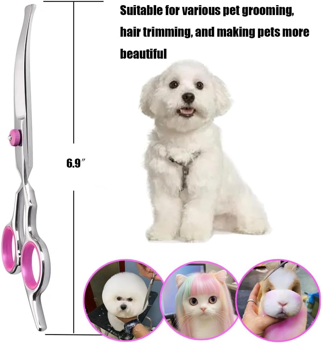 · Curved Scissors: Best for shaping the dog’s facial contours, around the ears, chest, and hips, where curved lines are needed.