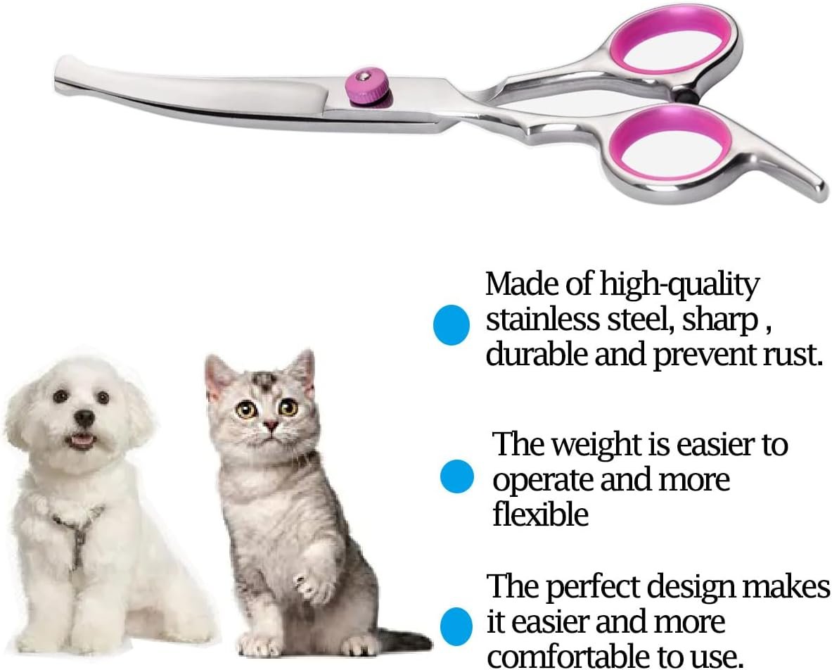 TOP QUALITY STAINLESS STEEL BLADES :The sharp stainless steel blades of dog grooming scissors ensure smooth grooming for dogs, a more professional cut, smoother and more stable, ideal for eliminating hair pads.
