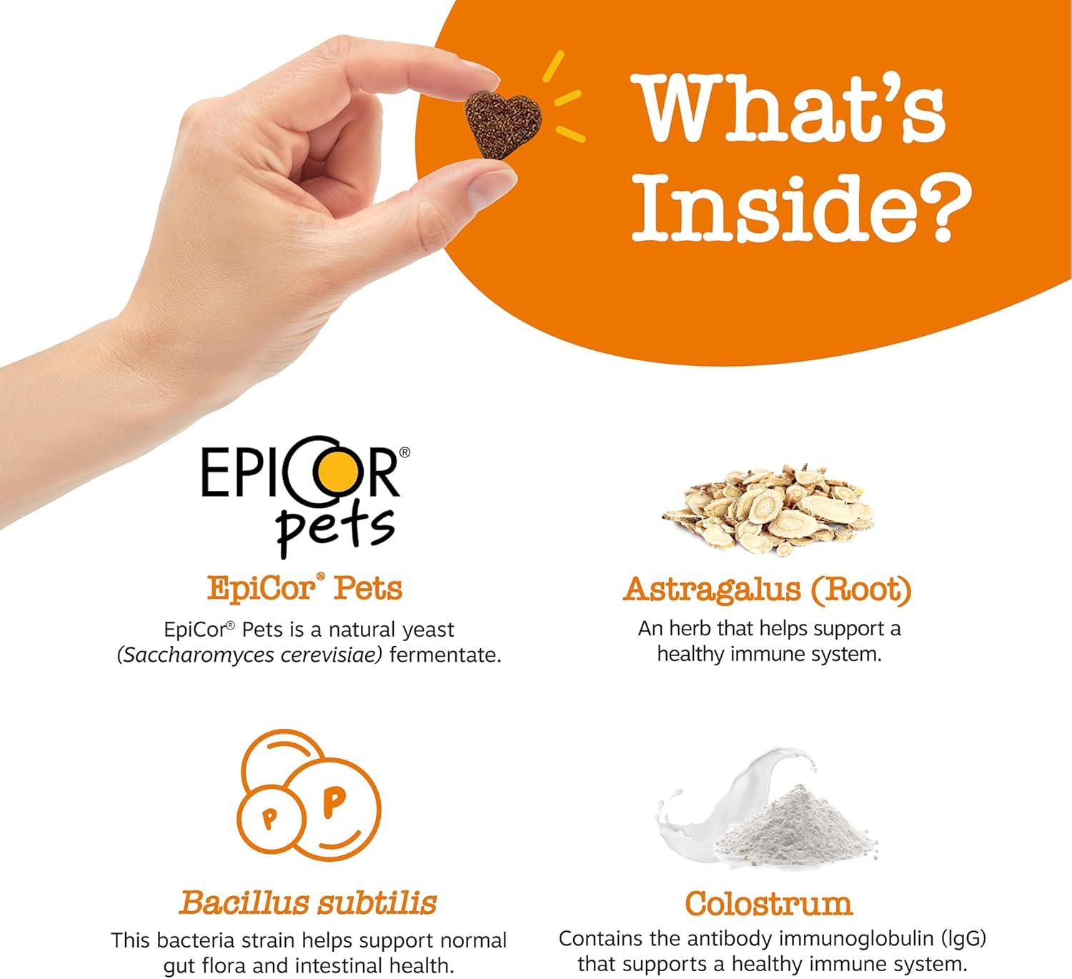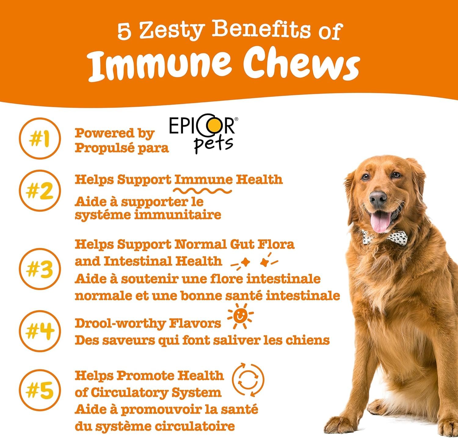Features EpiCor – At 80 mg per chew, EpiCor is a premium whole food yeast fermentate that helps support immune system function for your dog, no matter the breed!