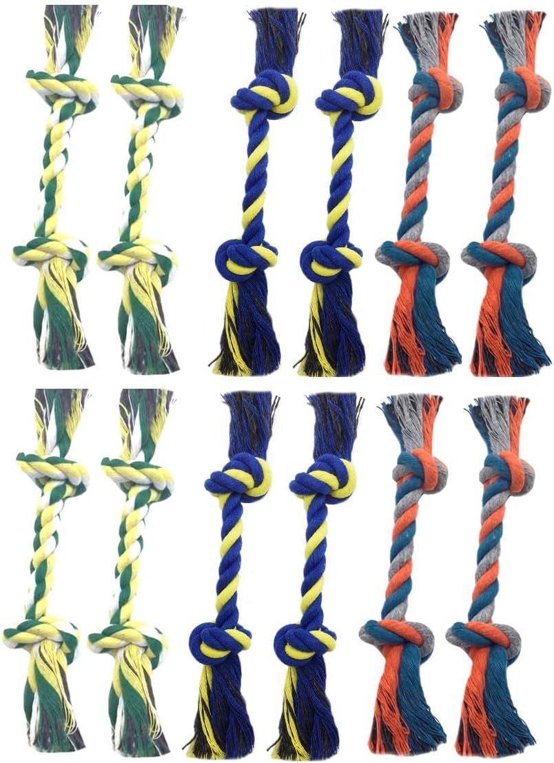 Keep your furry friend entertained with this comprehensive 12-pack of durable cotton rope toys. Each toy is expertly braided and knotted to create engaging textures that dogs love to chew and tug. The set features an assortment of vibrant colors and designs, including blue, yellow, and multi-colored combinations, making playtime more exciting. Measuring approximately 7.8 inches in length, these rope toys are perfectly sized for both interactive play and solo chewing sessions. The sturdy cotton construction provides a satisfying texture for your dog’s teeth and gums during play. These versatile toys are great for fetch, tug-of-war games, or simply as chew toys. The varied designs include double-knotted ends and twisted rope patterns that add interest and durability. Perfect for small to medium-sized dogs, these toys help promote healthy play habits and provide hours of entertainment. The multi-pack ensures you’ll always have a fresh toy ready for your energetic pup.