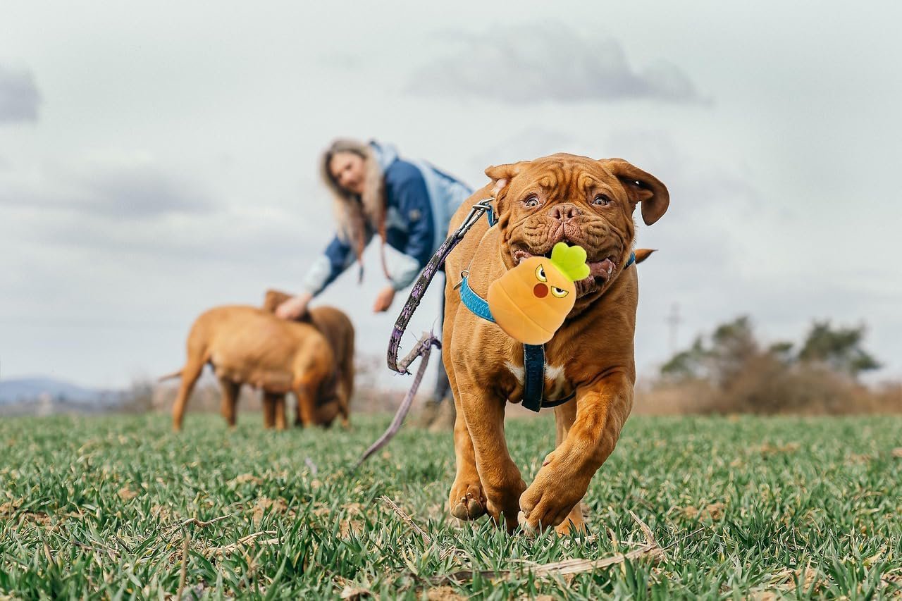 Dog squeaky chew toys for dogs who like to chew, rubber carrot tumbler dog toys for training and cleaning, durable interactive tough dog toys for medium and large dogs