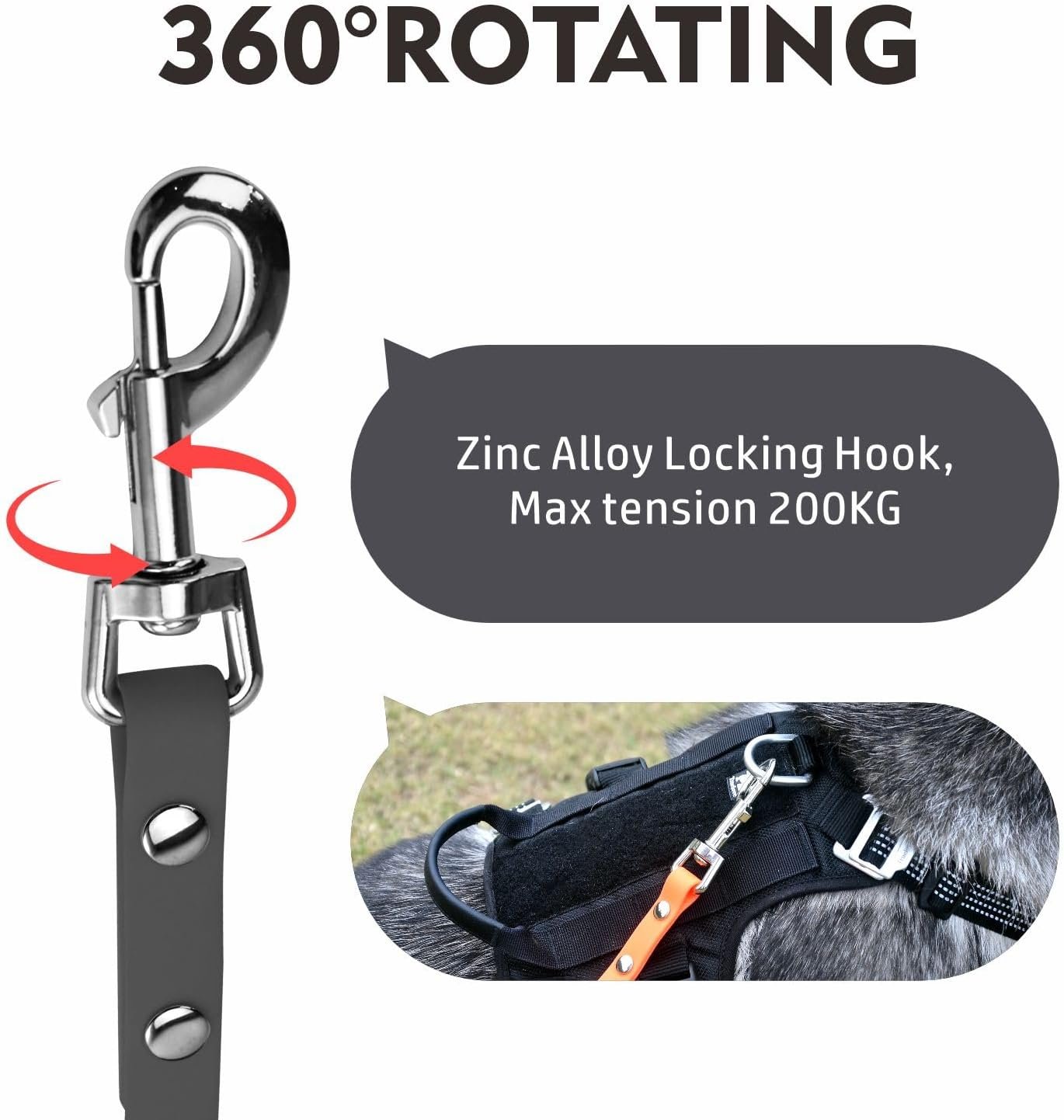 【Long Leash】 The inner is a sturdy nylon webbing, and the outer is an innovative coated PVC , strong and soft leash. The leash can withstand a maximum pulling force of more than 700lbs ,Not easy to knot.