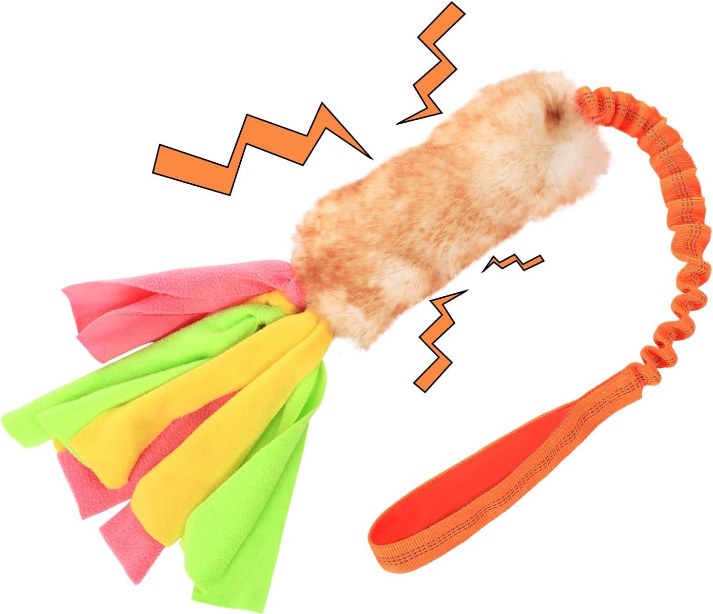 Bungee Rope for Comfortable Tugging: The handle of the tug toy is made of high-quality nylon with inner elastic cord. The stretchy handle not only gives doggies more tug of war pleasure but also reduces stress of pulling, which protects your arm and makes tugging more comfortable.
