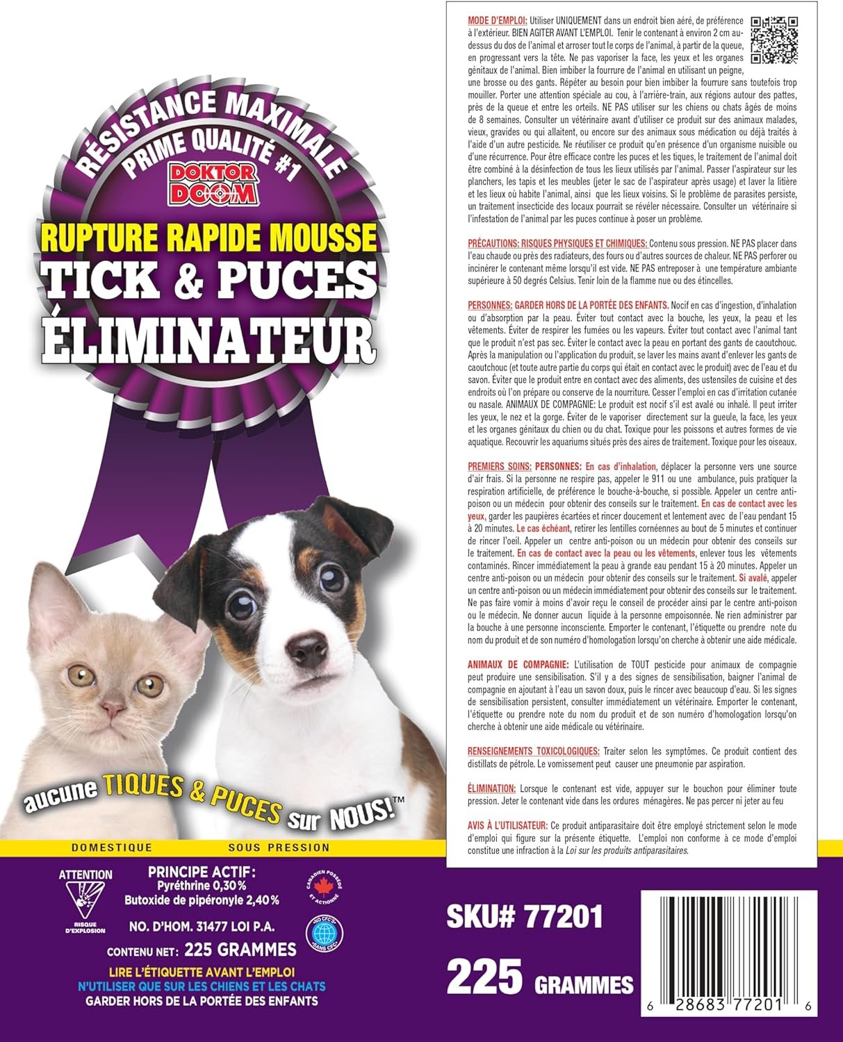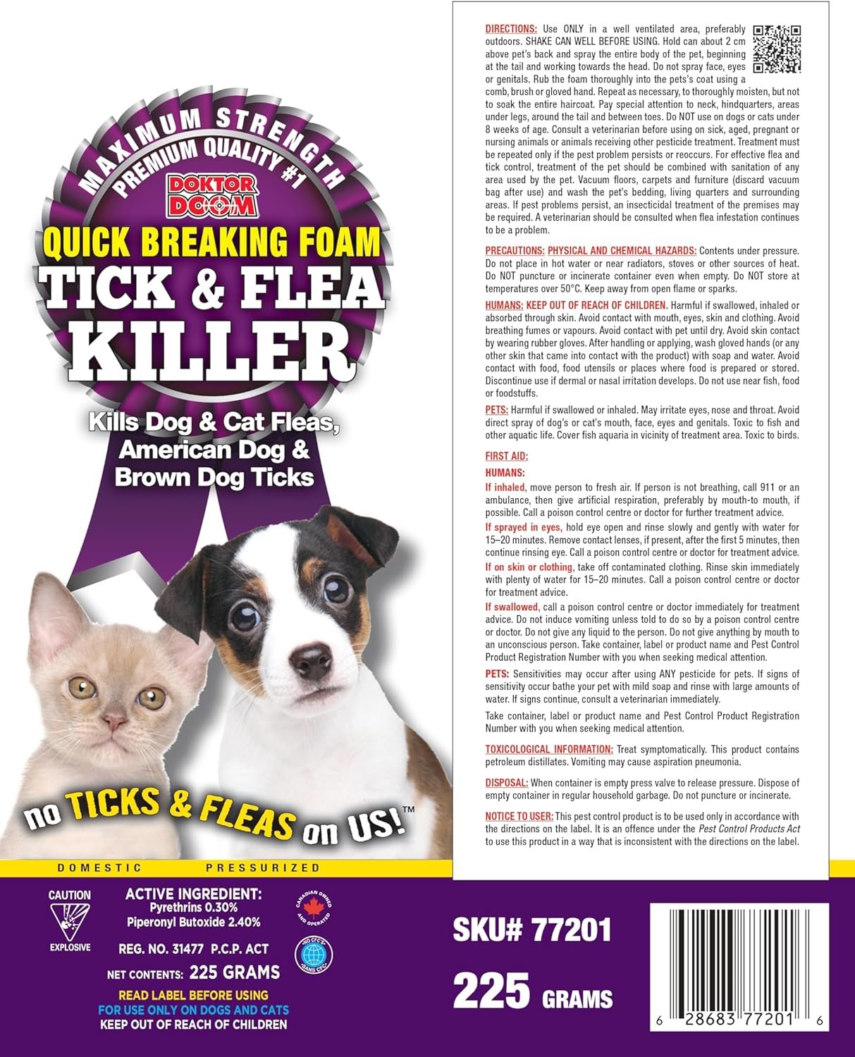 Doktor Doom Quick Breaking Foam Tick & Flea Killer for Cats and Dogs, 225g