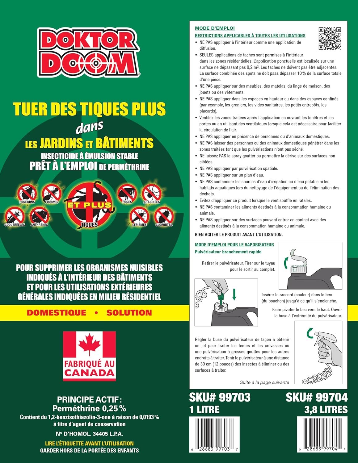 Doktor Doom Tick Killer Plus for Yards & Buildings w/Trigger Spray, Made in Canada, 1L