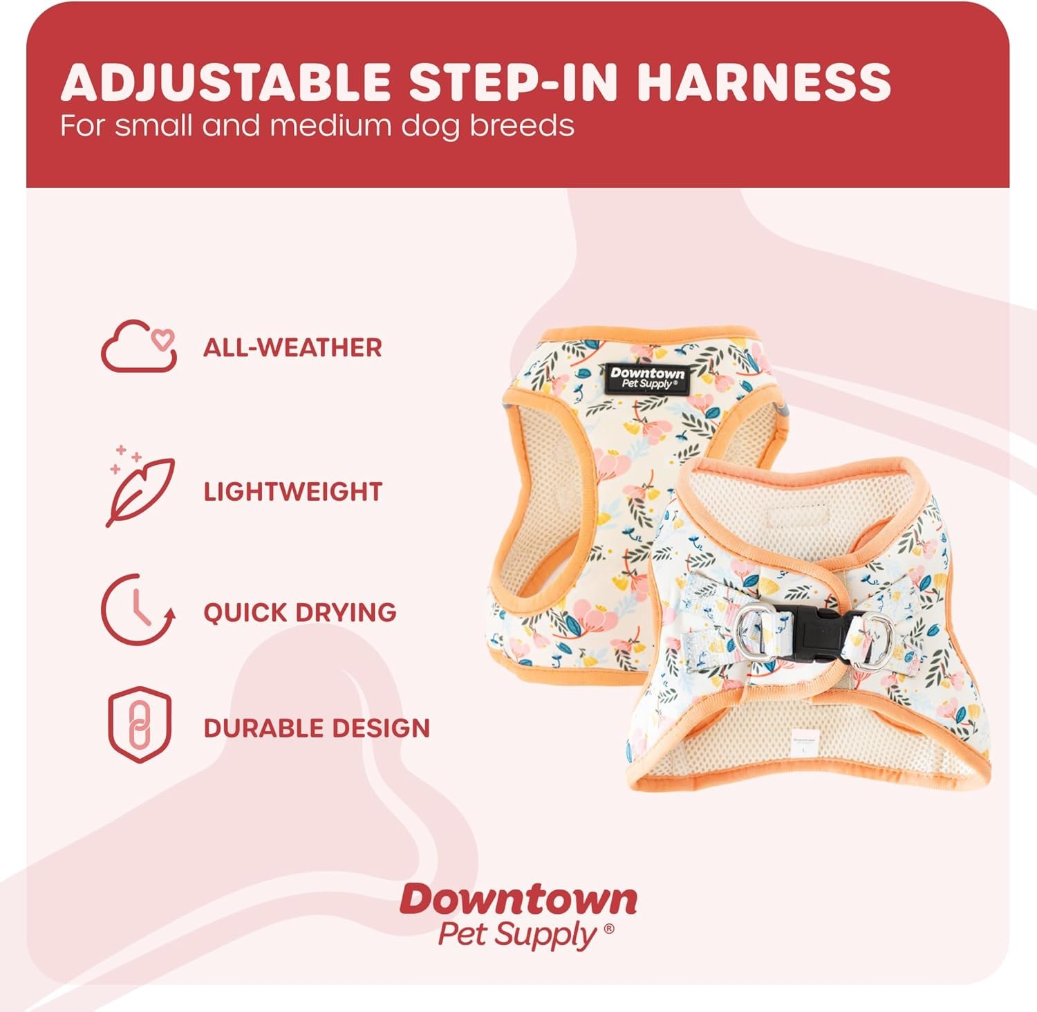 Downtown Pet Supply Step in Dog Harness for Small Dogs No Pull, Small, Floral – Adjustable Harness with Padded Mesh Fabric and Reflective Trim – Buckle Strap Harness for Dogs