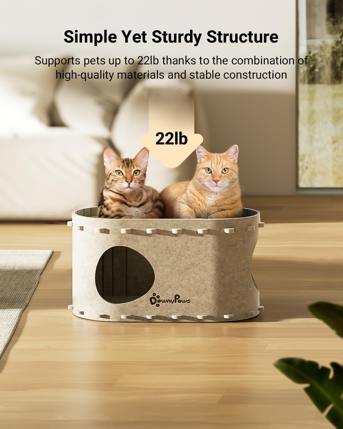 Simple Yet Sturdy Structure, Built to Last: The cat cando features a simple yet robust structure that supports pets up to 22lb/10kg. Crafted from high-quality materials, it provides a reliable and secure space tailored for your furry companions, allowing them to jump and play freely.