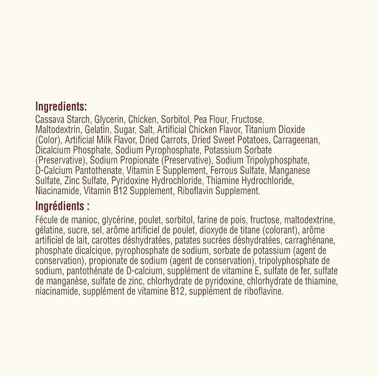 DreamBone chews have all the benefits of a rawhide chew…without the rawhide! No-rawhide DreamBone chews are made with real chicken, beef, bacon and cheese or sweet potato and wholesome vegetables for a scrumptious taste dogs can’t resist! DreamBone DreamSticks have all the benefits of a rawhide chew — without the rawhide. No rawhide DreamSticks are made with real chicken and wholesome vegetables for a scrumptious taste dogs can’t resist! Each fun chew combines real chicken and vegetables for a fun and flavorful combination. Treat your dog with a chew that is highly digestible and 100% delicious. Vitamin and mineral enriched, these rolled sticks are great alternative chews to standard rawhide. Chewing helps maintain healthy teeth and gums for your pup too! Now there is a treat that you both can be happy about. Each bag contains 4 no rawhide stick chews. Feed one to two chews per day. DreamBone chews are intended for intermittent or supplemental feeding only.