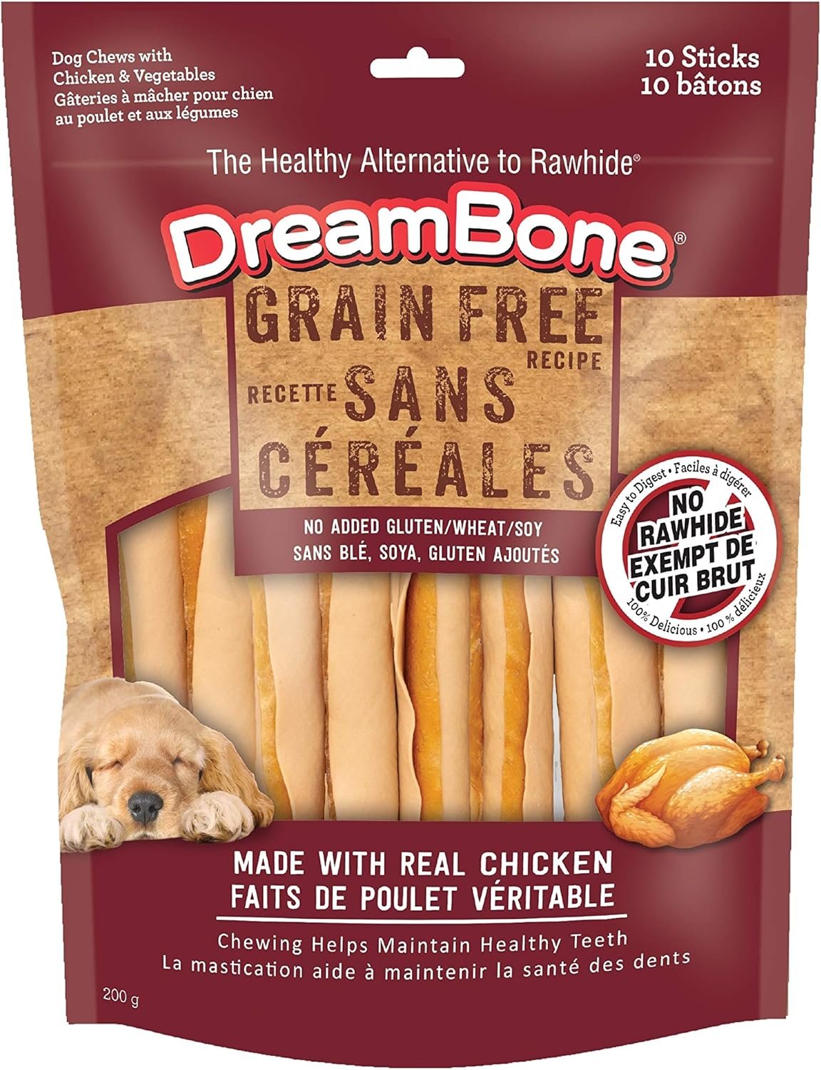 DreamBone Grain Free Recipe Stick Dog Chews, 10 Count, Made with Real Chicken, Rawhide-Free, for All Dogs