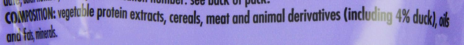 Dreamies Duck Cat treats are crunchy squares filled with delicous soft centres which Cats find irresistable. The best thing about Dreamies Duck is there are only 2 calories per treat, no risk of getting a fat Cat there! Ingredients: Vegetable Protein Extracts, Cereals, Meat and Animal Derivatives (min. 4% Duck), Oils and Fats, Minerals. Protein 36%, Fat 20%, Inorganic Matter 9.5%, Crude Fibre 1%