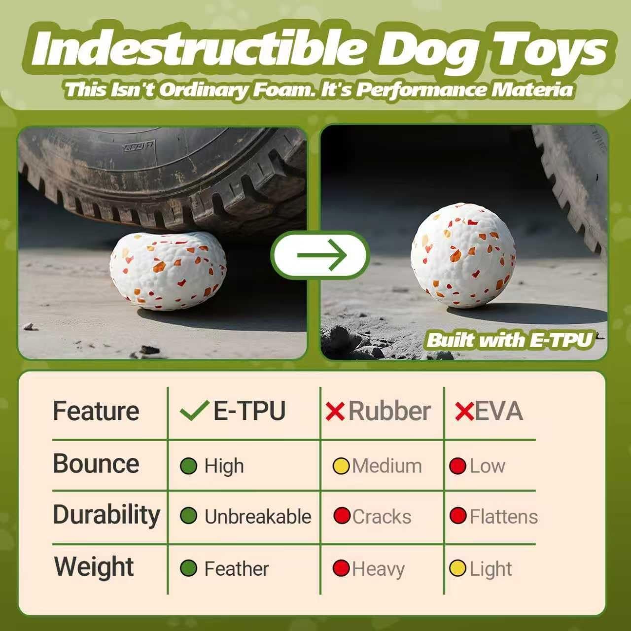【The Perfect Gift & Worry-Free Guarantee】Surprise dog lovers featuring these premium dog balls in festive packaging, excellent for birthdays or holidays. While no toy endures permanently, our E-TPU material offers exceptional durability. Contact us for replacement assistance if needed, and added enjoyment.
