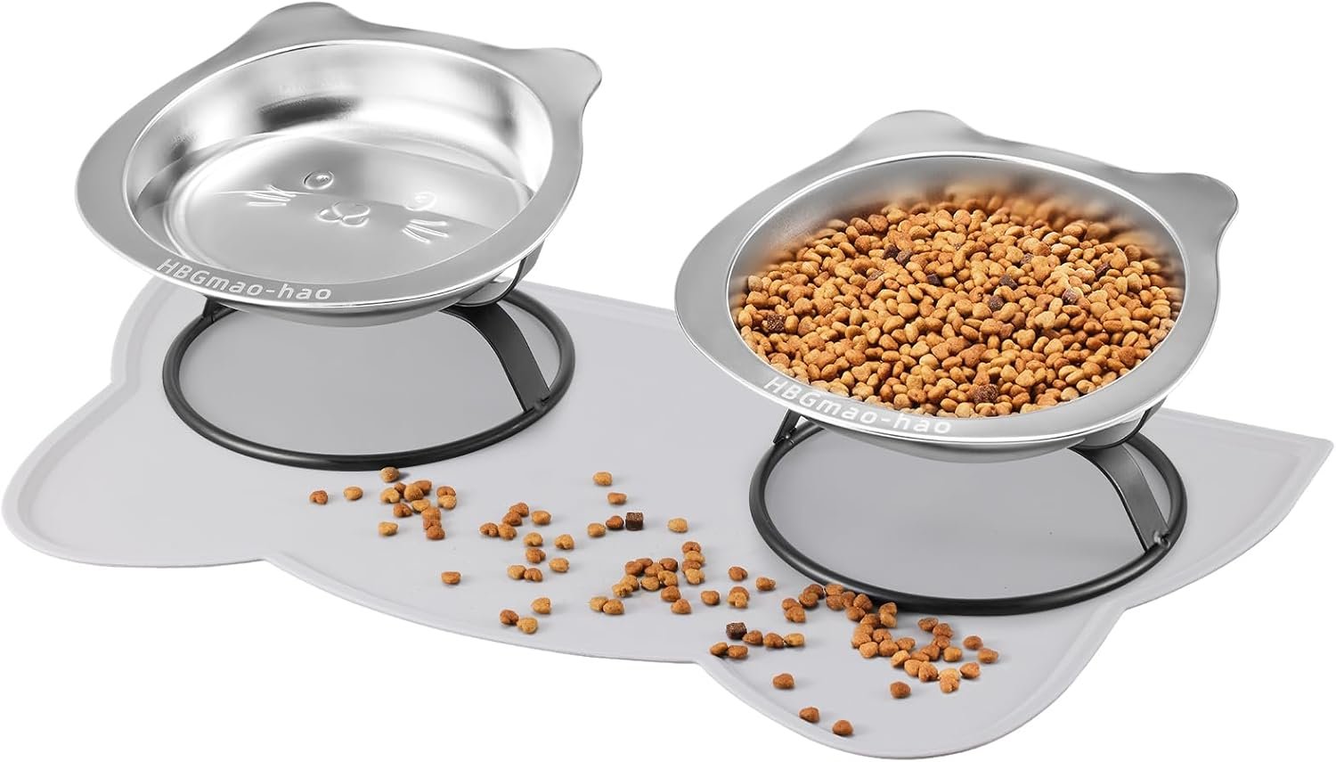 HBGmao-hao Elevated cat food bowls with food mat 7.1″ Wide Stainless Steel Whisker Friendly Dishes for Cats/Kittens/Small Dogs