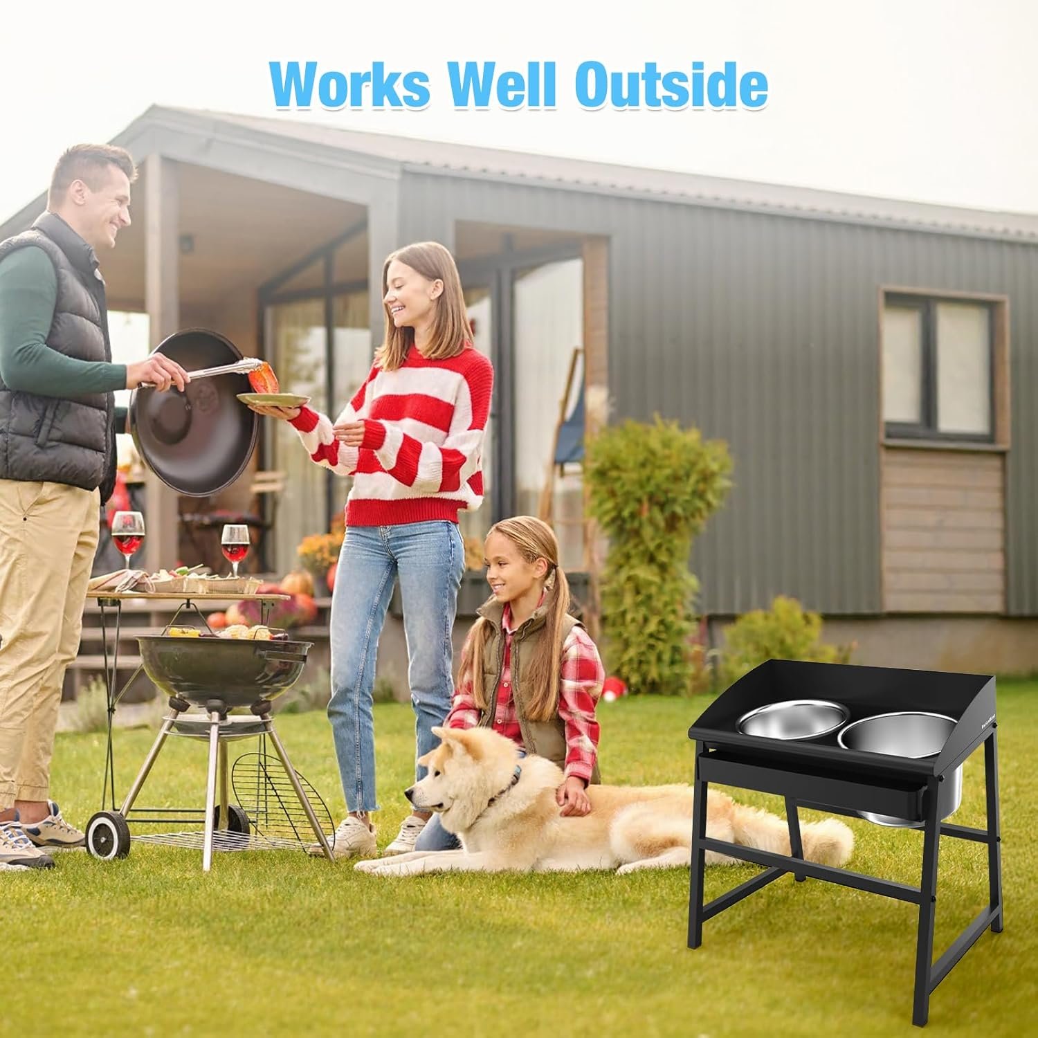 Sturdy Full-Metal Large Dog Bowl Built to Last a Lifetime: Constructed with a full-metal design, this elevated dog bowl stand is built for long-lasting use, both indoors and outdoors. Unlike wooden stands that are prone to mold and breakage, our iron stand resists corrosion and boasts exceptional durability, making it ideal for even the most energetic dogs. Plus, assembly is quick and hassle-free.