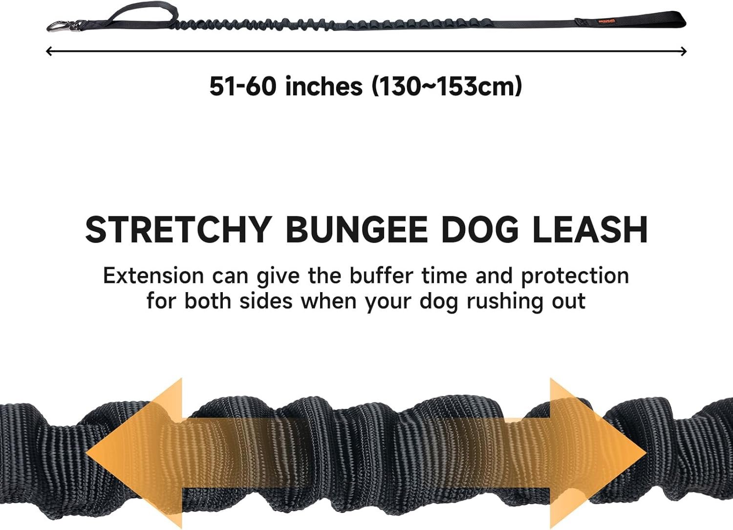 Elastic bands provide ductility. The elastic dog leash have elastic stretch(expands about 12 inches), elasticity cushion keeps your arm or your dog’s body from getting yanked when your dog’s change direction or forward suddenly,the enough stretch will reduce risk of injury and increases comfort.