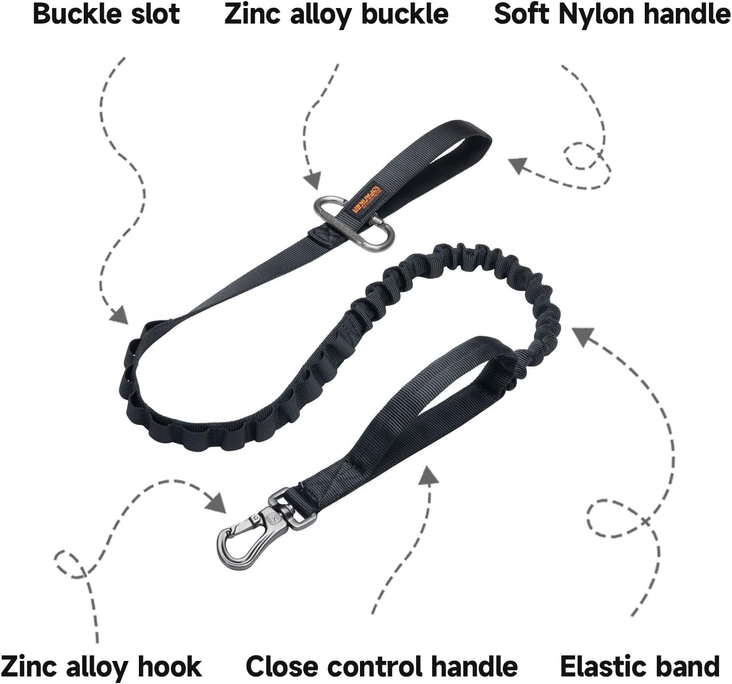 EXCELLENT ELITE SPANKER Bungee Dog Leash Tactical Nylon Adjustable Tactical Leash for Dogs Quick Release Elastic Leads Rope with 2 Control Handle(Black)