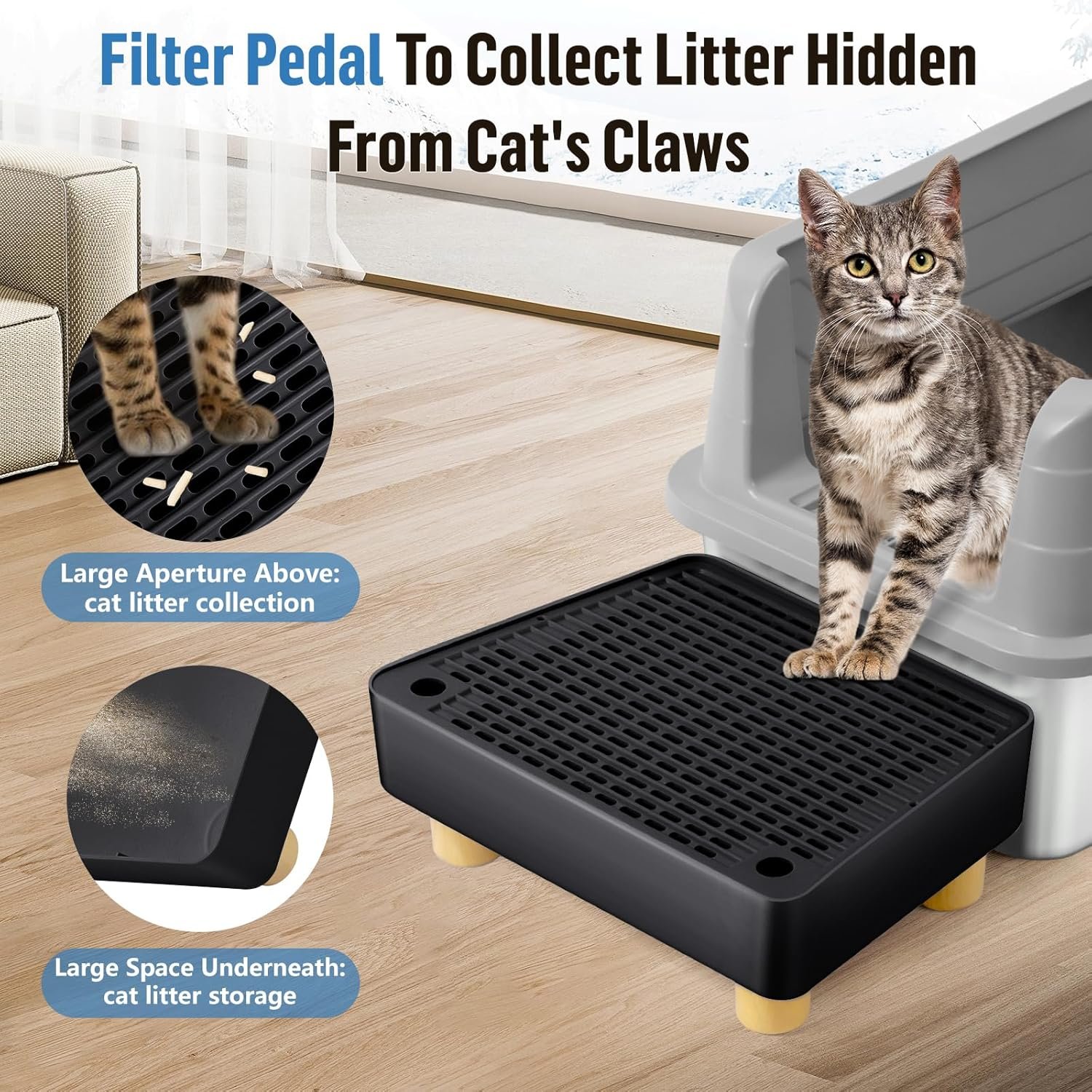 Easy to Clean: The cat litter tray stair features large aperture plastic panel. This design can collect cat litter hidden in cat paws and quickly open the filter pedal for easy cleaning.
