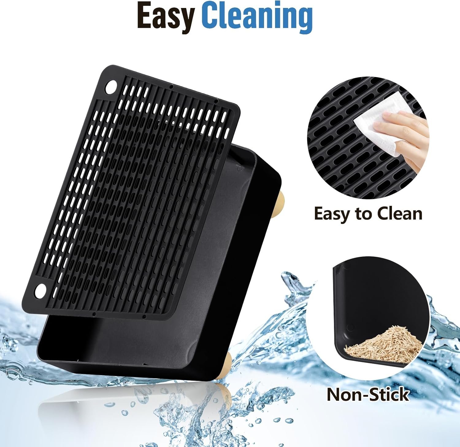 Premium Cat Litter Ramp: The raised cat litter ramp is made of thick plastic with a solid structure, which can prevent leakage and leave no odor. Equipped with anti-slip wooden stool legs, it is very sturdy, durable, and not easy to slip.