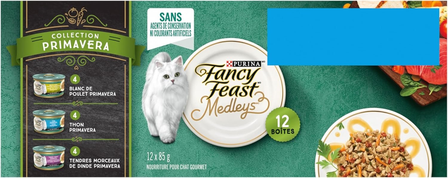 Fancy Feast Medleys Wet Cat Food, Primavera Collection Variety Pack 3 Flavours – 85 g Can (12 Pack)
