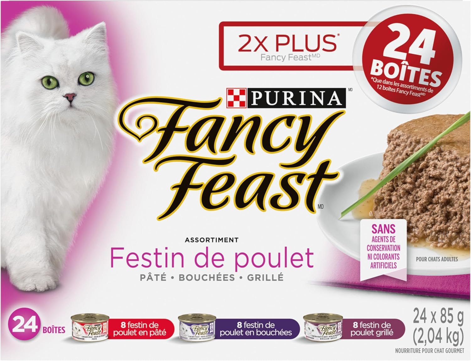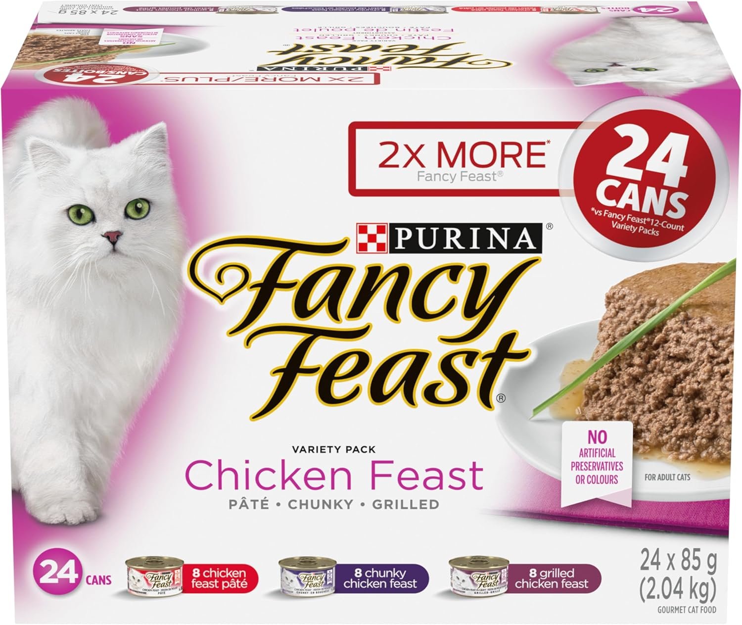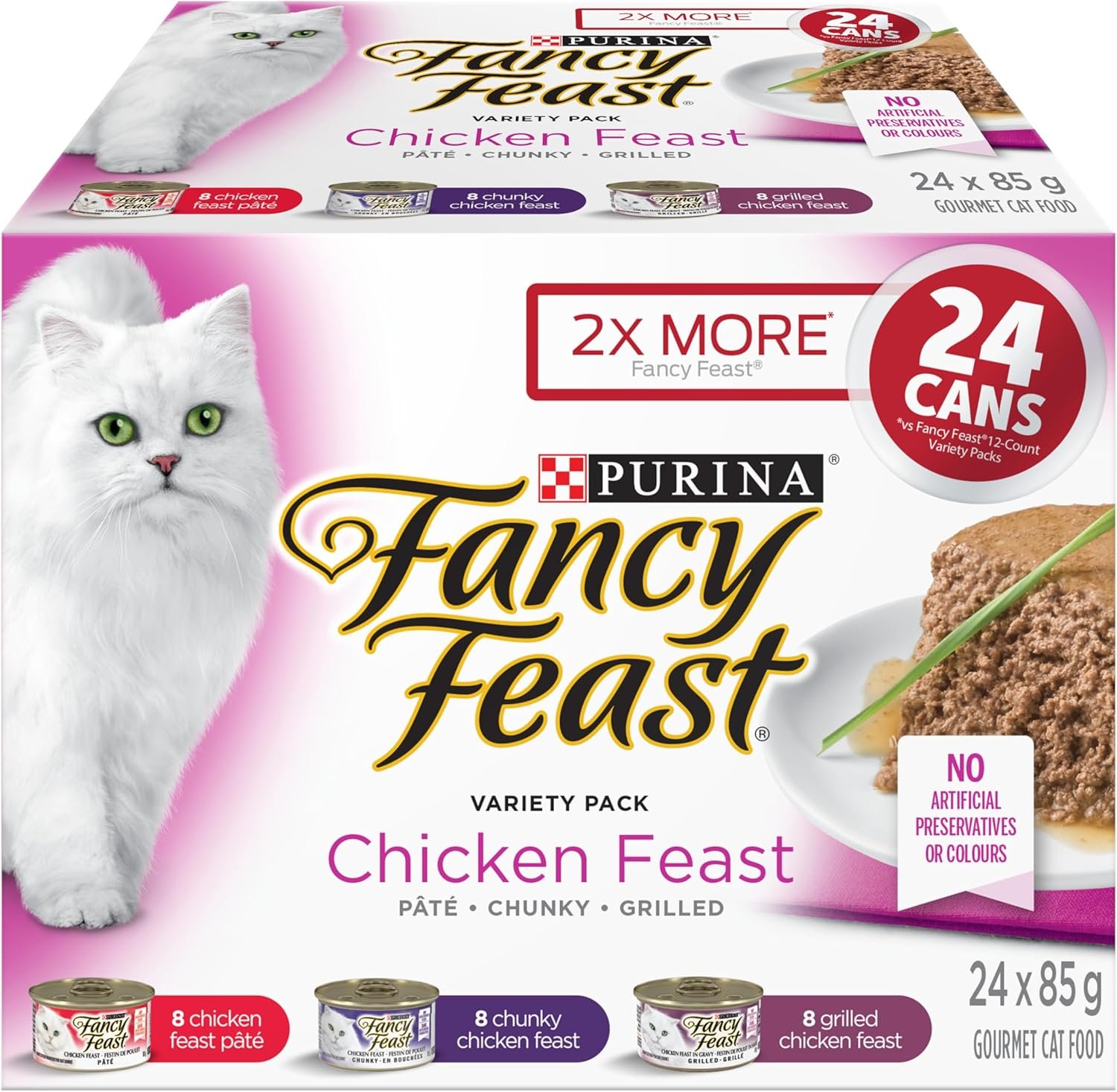 Fancy Feast Wet Cat Food, Chicken Feast Variety Pack 3 Flavours – 85 g (24 Pack)