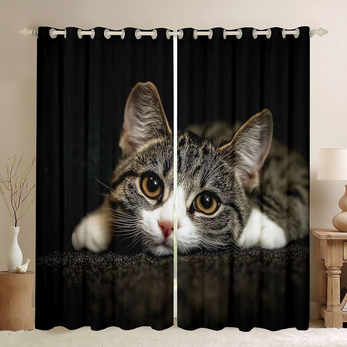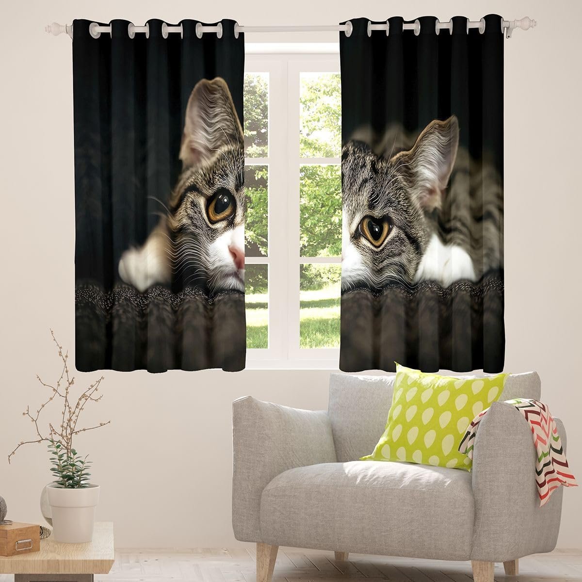 Feelyou Cats Curtains 3D Animals Pattern Window Curtains for Bedroom Living Room for Kids Boys Girls Pet Cat Kitten Decor Window Drapes Brown Grey Window Treatments 38W X 54L,2 Panels