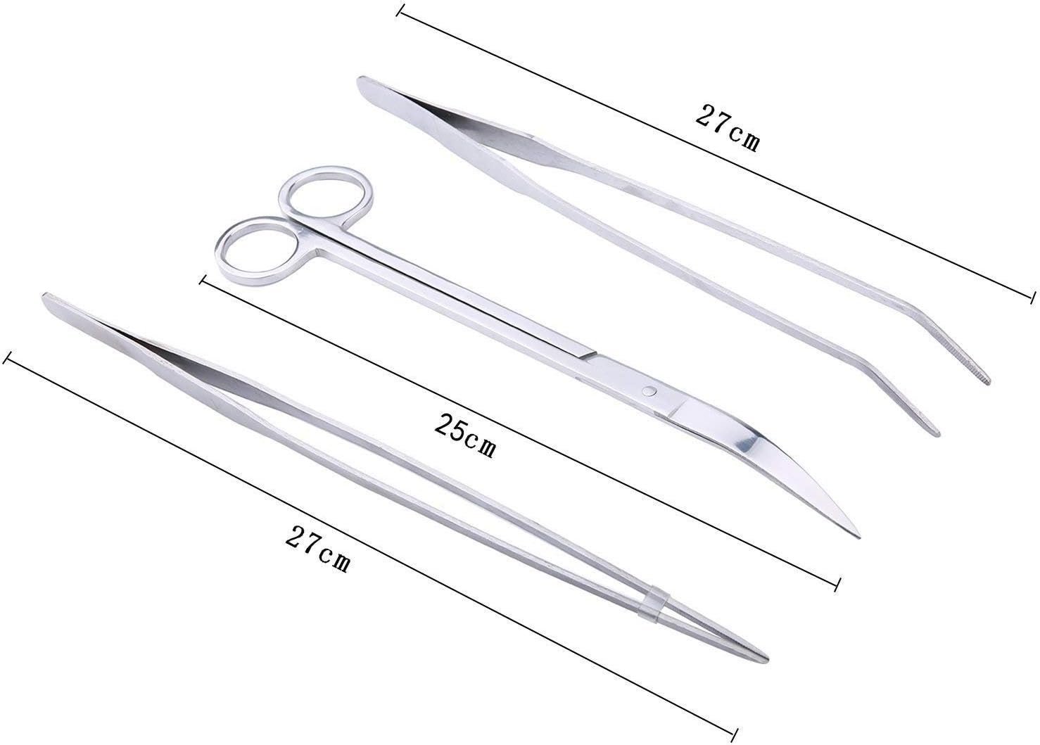 ✔ Aquarium tweezers kit includes Curved Tweezer, Straight Tweezer, and Curved Scissor. Scissors Length: 25cm / 9.85inch; Tweezers Length: 27cm / 10.5inch. Gets in hard-to-reach places and mows down aquarium foreground plants. With aesthetic design and streamlined.