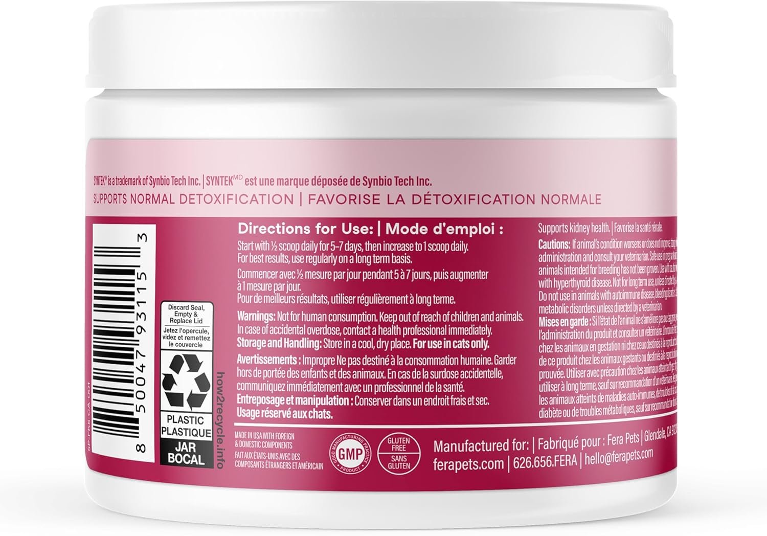 Fera Pets Cat Kidney Support Powder with Antioxidants & Probiotics – Enhances Renal Health & Function – Promotes Regular Detoxification – 60 Scoops