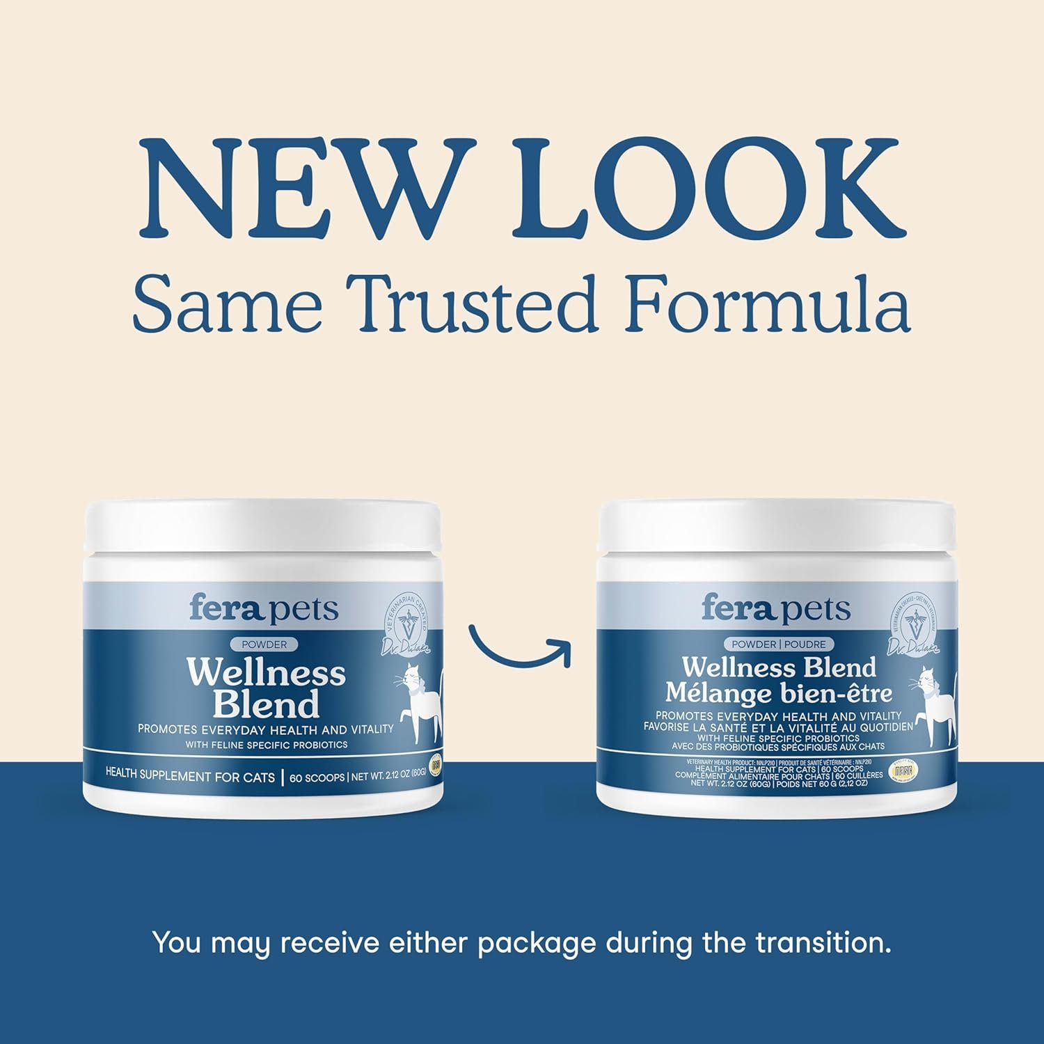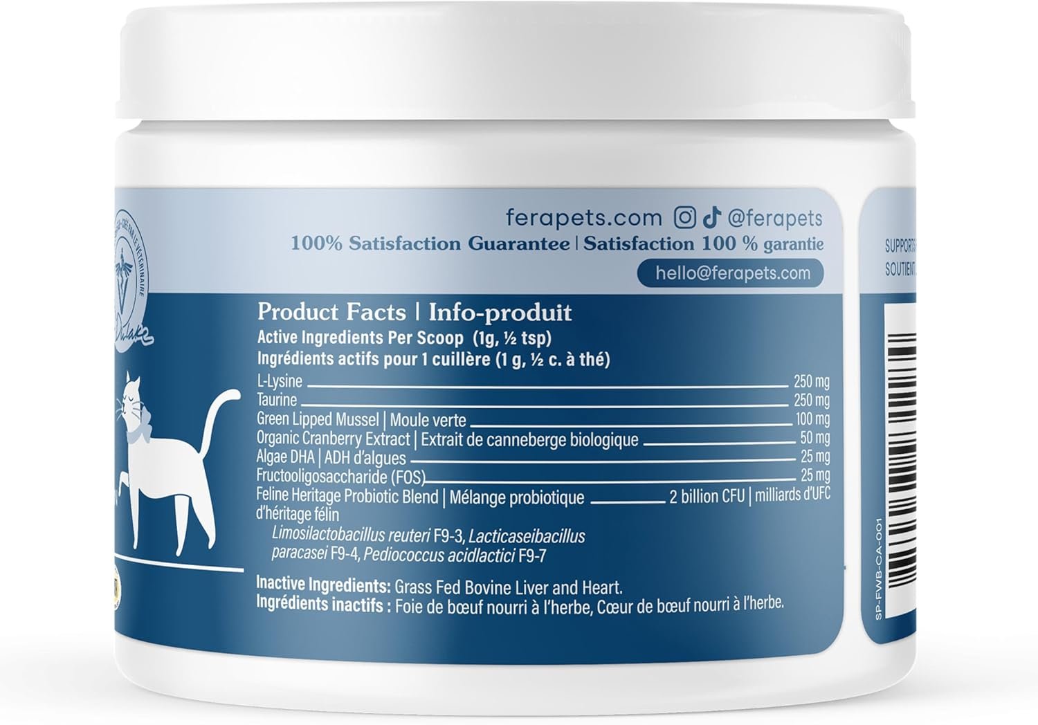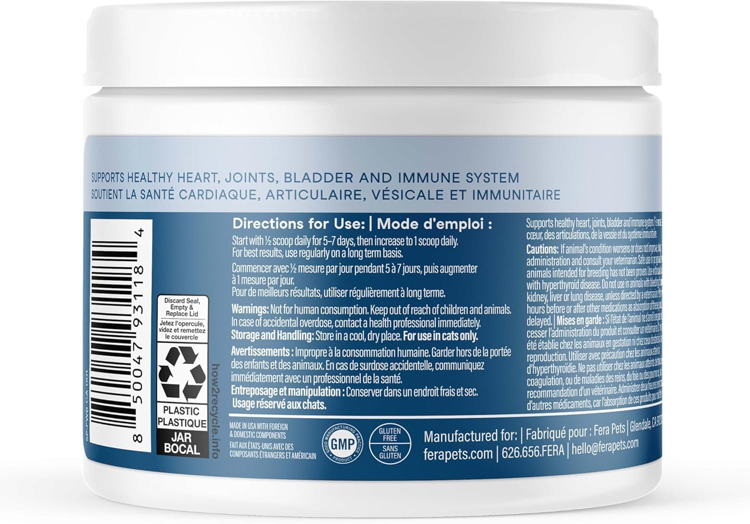 Fera Pets Wellness Blend – Cat Health Supplement with Feline-Specific Probiotics, Taurine and Lysine – Promotes Healthy Joints, Immunity, Heart & Bladder -Powder – 60 Scoops