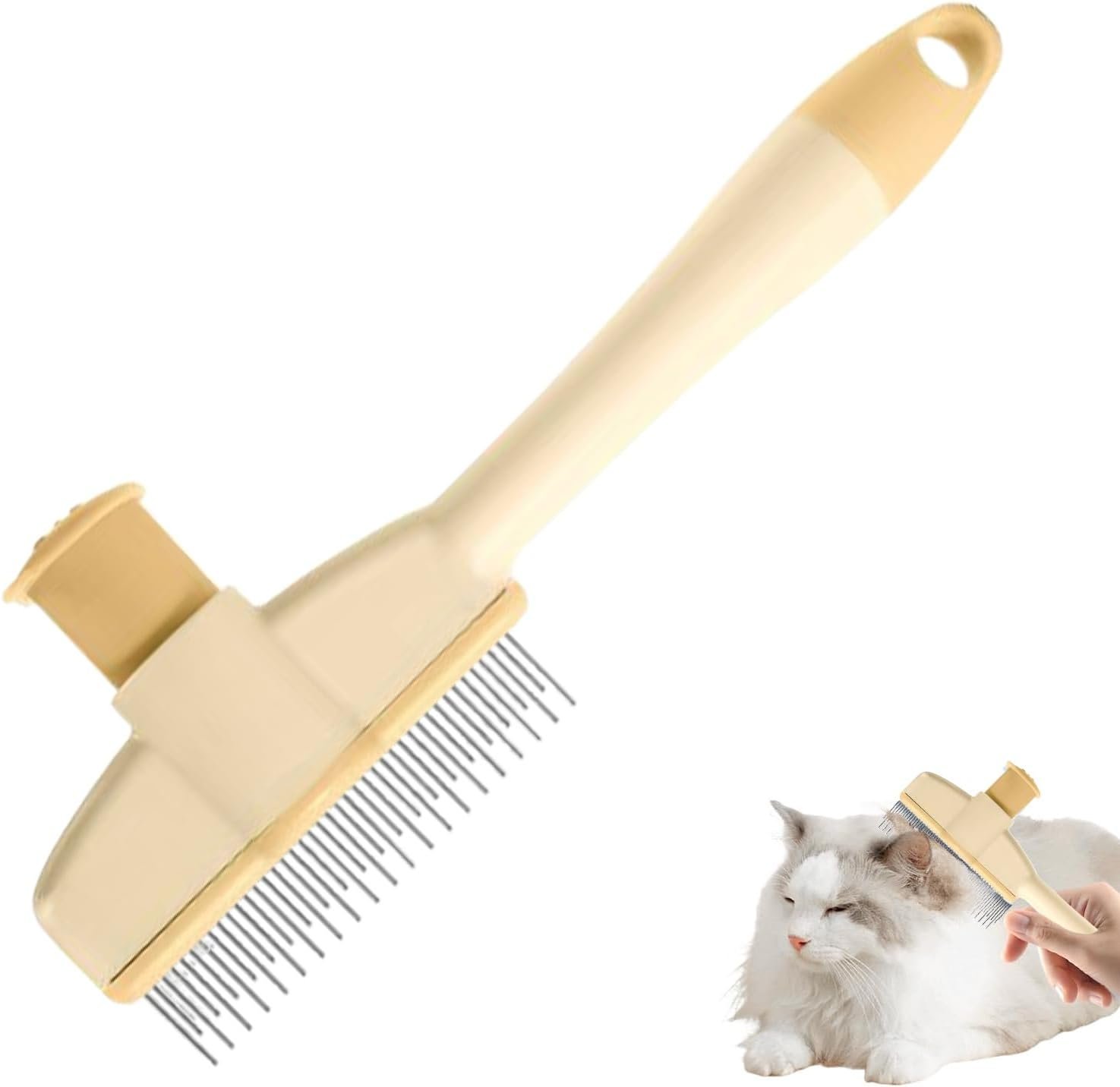 Featuring an ergonomic anti-slip handle, this tool provides a secure hold during use, adaptable to diverse brushing angles for effective cat grooming paired with easy single-touch hair release functionality