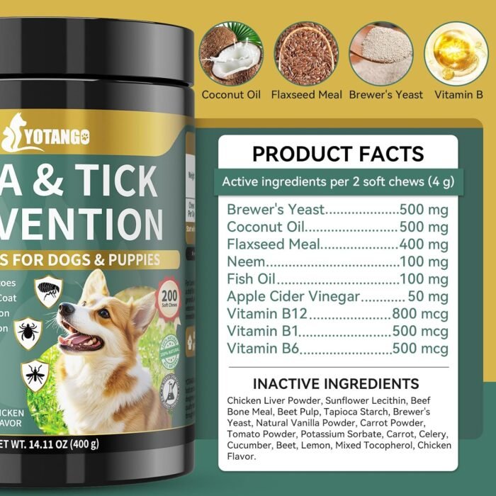 Flea & Tick Chewables for Dogs, 200 Chews Soft Treats, Natural Supplemen – Dog Flea and Tick Treatment for All Breeds & Sizes Dogs and Puppies