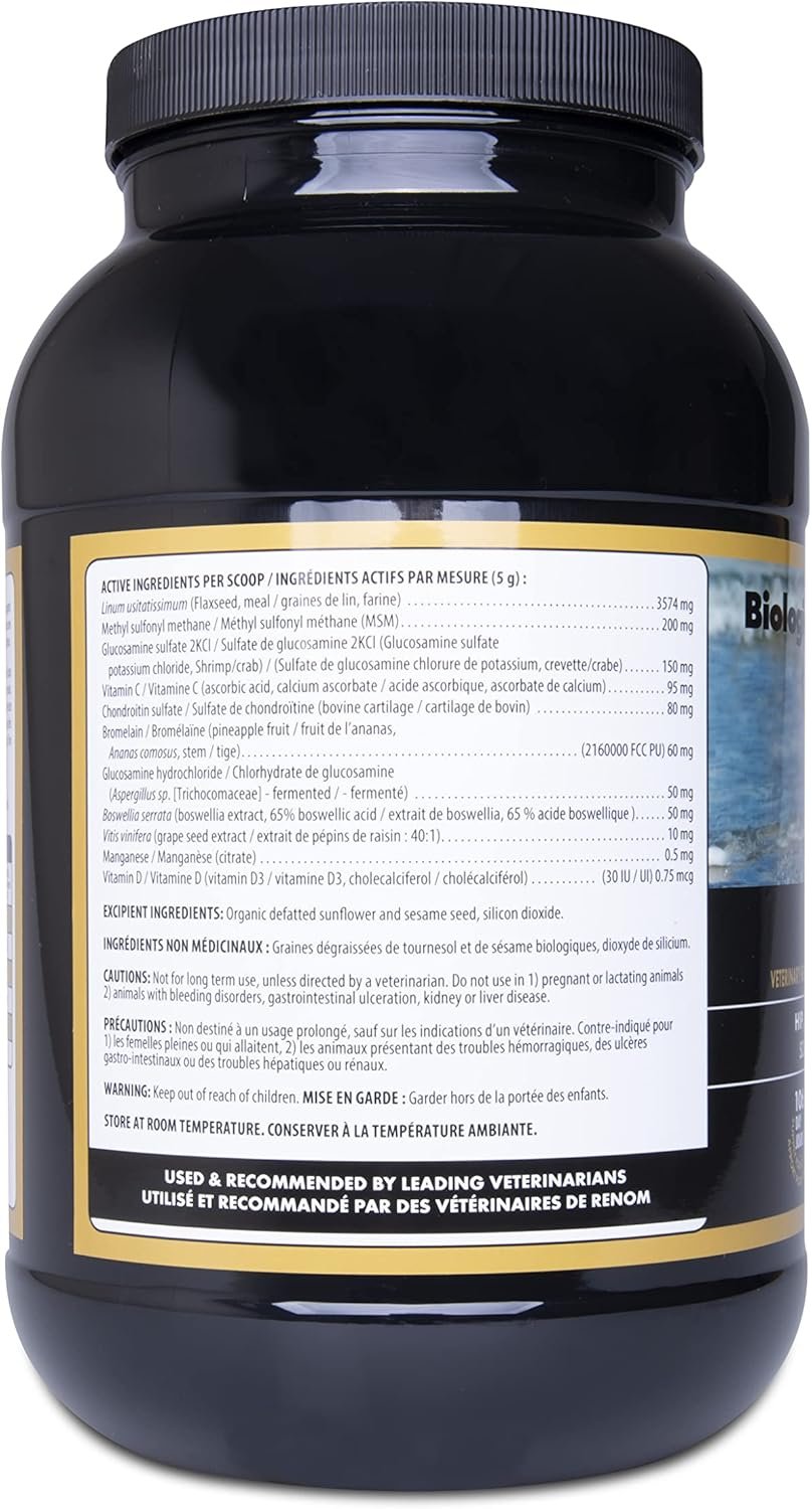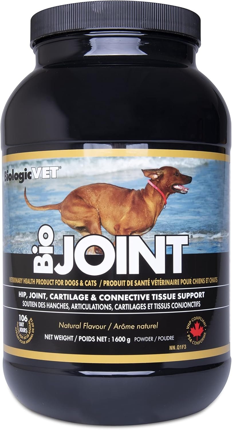 Flora Health BiologicVET BioJOINT Advanced Hip and Joint Mobility for Dogs and Cats, Lignans, Prebioptics, Glucosamine, Chondroitin, Bromelain, MSM Supplement 1600 g Powder
