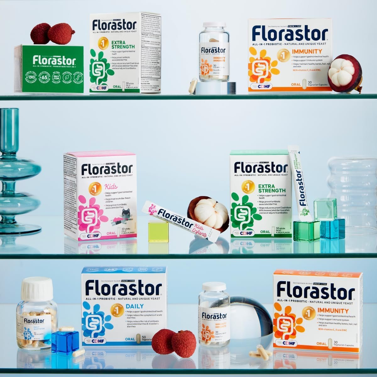 CLINICALLY studied EFFICACY – Backed by over 65 years of research, and more than 130 clinical trials, Florastor efficacity has been clinically studied. It reduces the risk of antibiotic-associated diarrhea by up to 84 % in adults.
