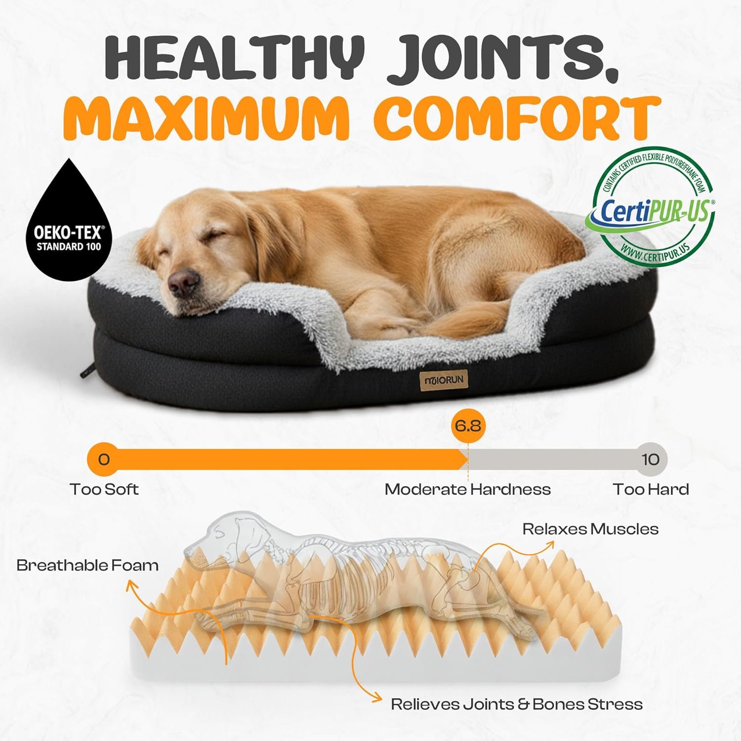 Supportive Egg-Crate Foam Base – Orthopedic egg-crate foam distributes weight evenly to relieve pressure on hips and elbows—no more bottoming-out pads for big dogs or seniors. Works as a kennel or crate cushion and as an indoor sleeping pad; durable support from puppy to XL.