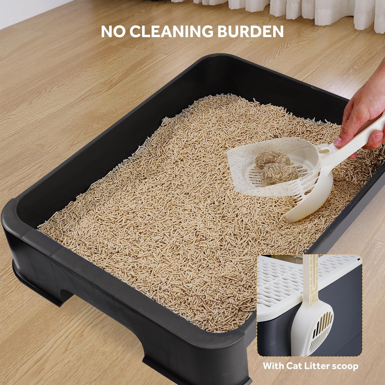 【Safe and Stable】Cats and their claws can be tough on products, so we use durable materials that can stand up to daily wear and construct to last a long time. Plus, a scoop is also included for easy cleaning.