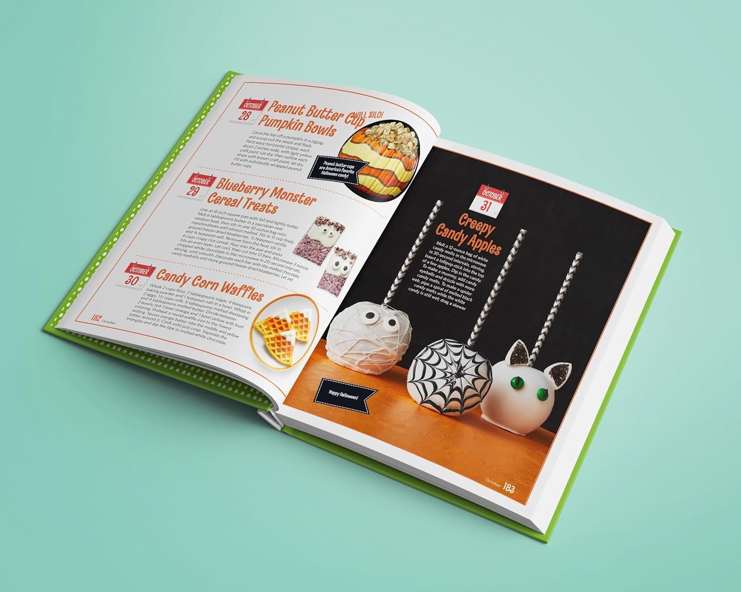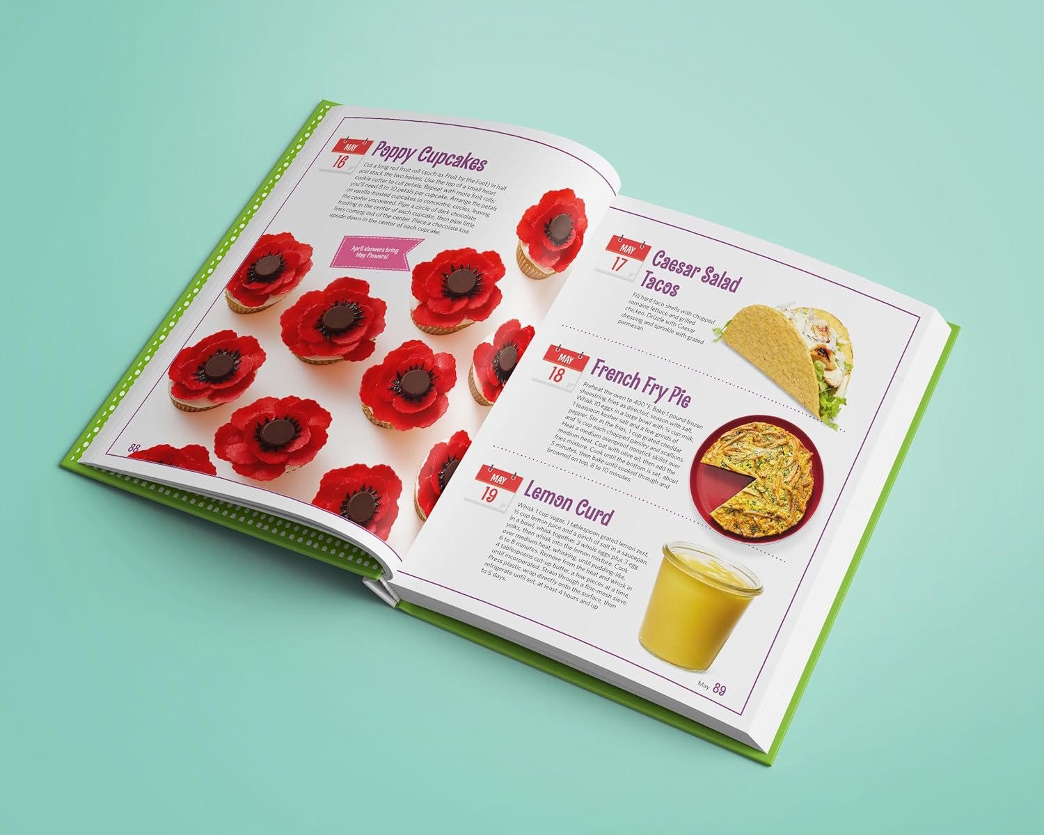 365 sweet and savory recipes and photos—one for every day of the year! Holiday cookies and gifts (like doughnut snowmen) Easy food crafts (some use ready-made shortcut ingredients!)Fake-out snacks (ice cream sandwiches that look like mini burgers)Cupcake decorating (flower cupcakes made with snipped marshmallows for petals)Cute bites for April Fool’s Day, Earth Day—and leapfrog cookies for Leap Year!Fun food trivia throughout