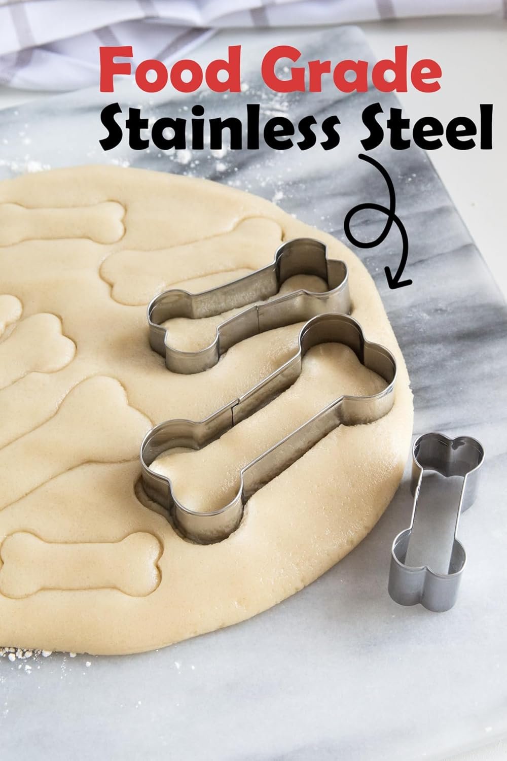 STAINLESS STEEL STURDY CONSTRUCTION Set of 3 dog bone shaped cookie cutters are perfect for making homemade dog treats and biscuits, cutting out cookie dough, sandwiches, fruits and more!