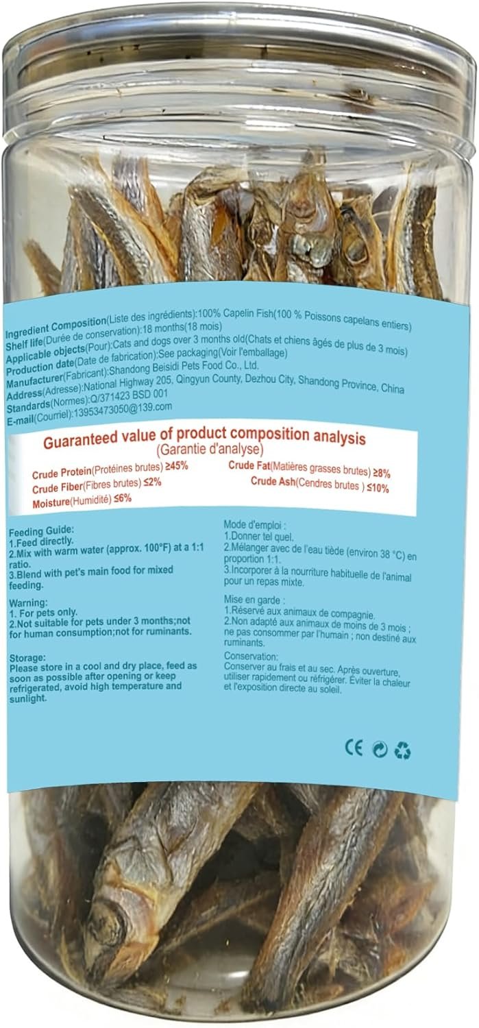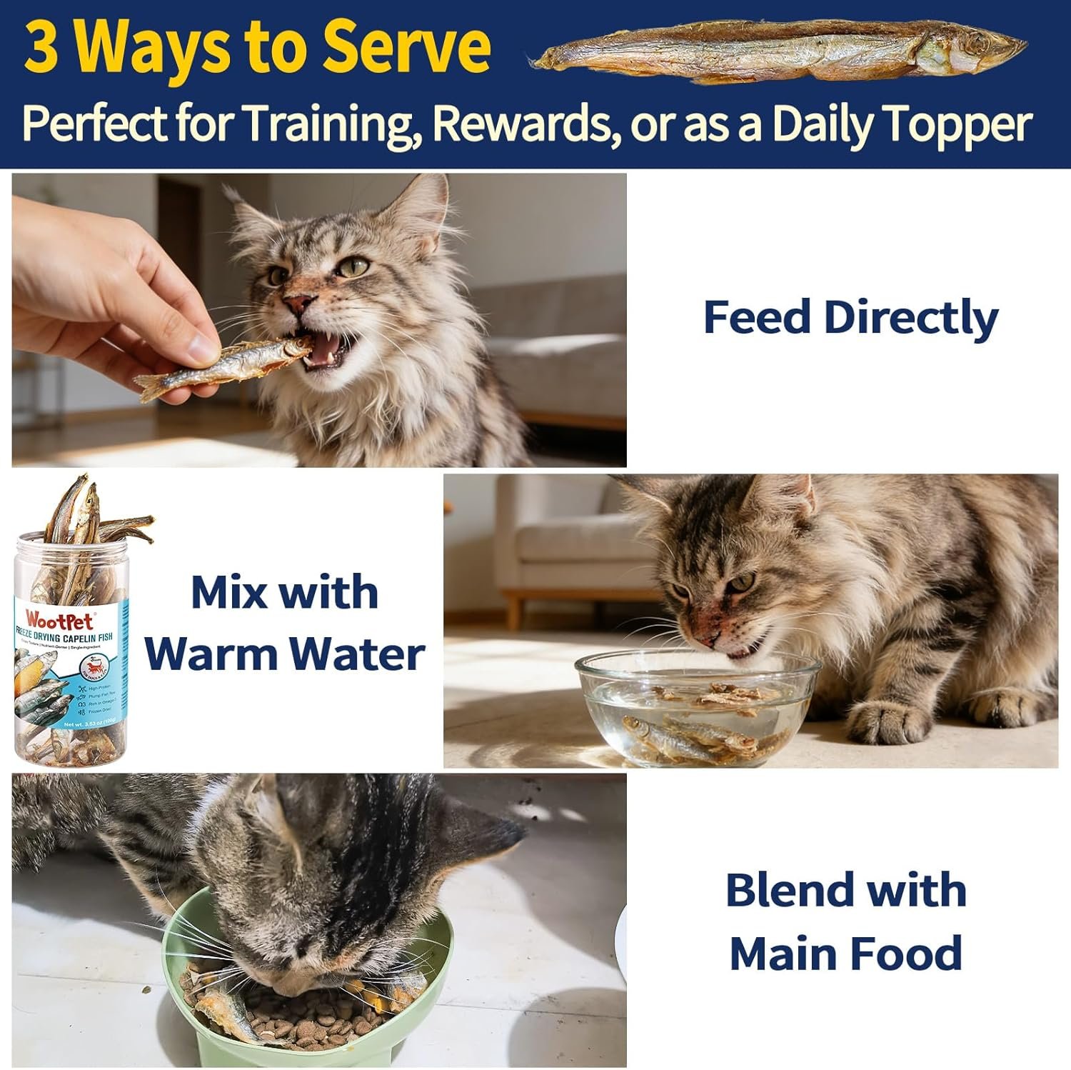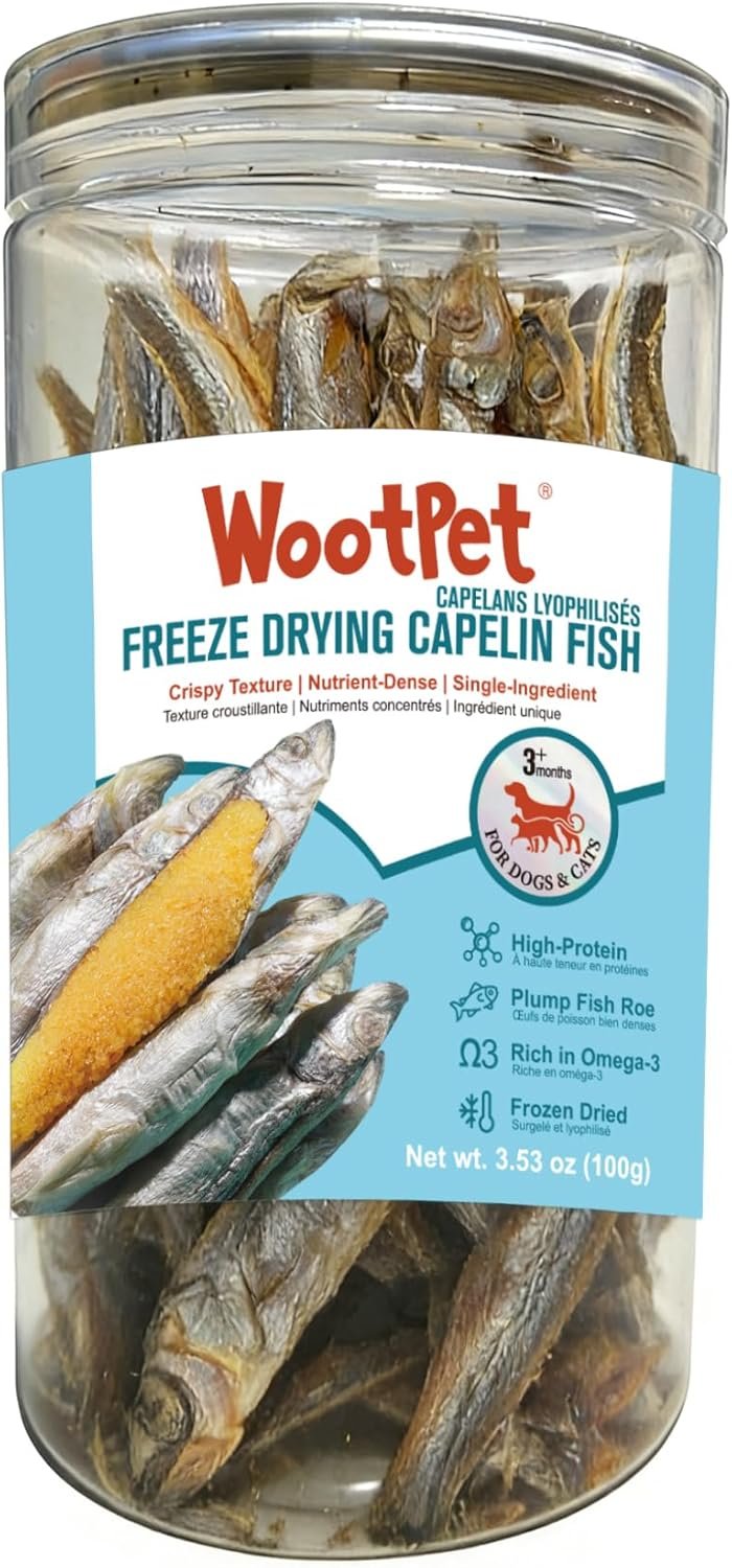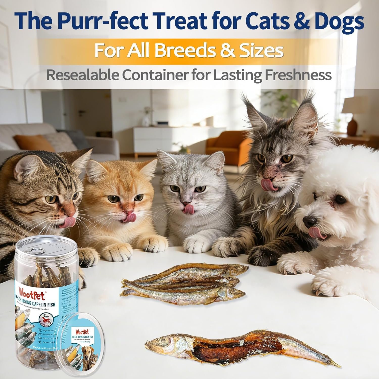 Freeze Dried Capelin Cat Treats, Whole Fish Dental Sticks, Single Ingredient Cat Snacks for Skin & Coat Health, No Grain & Filler, Crunchy Topper 113g