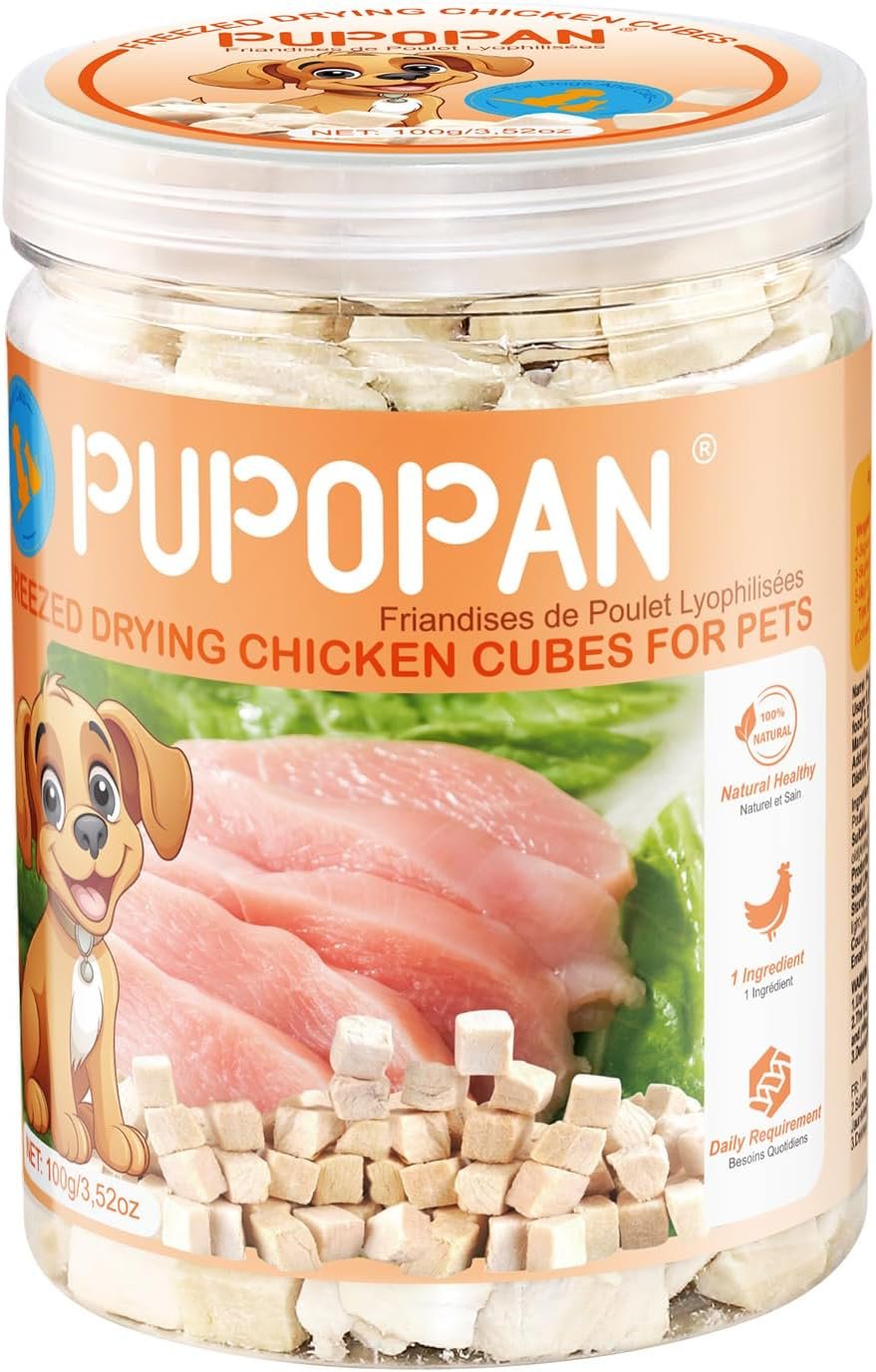 Freeze-Dried Chicken Cat Treats, Chicken Cube Snacks for Pets, Single Ingredient Chickens Dog Treat Bite-Sized Pieces