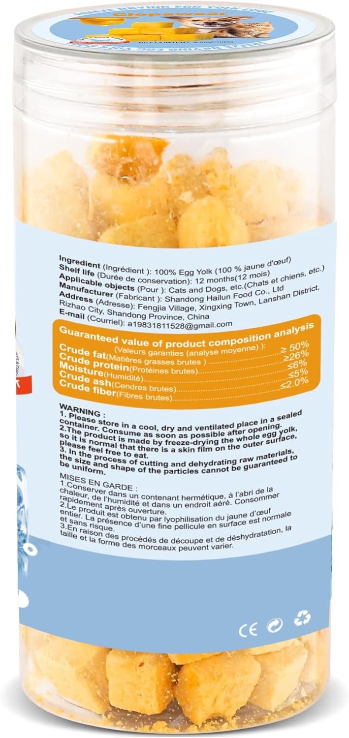 Freeze-Dried Egg Yolk Treats – Pure Single-Ingredient Protein Snacks, Supports Skin & Coat Health – Healthy Crunchy Rewards for Cats & Dogs, Perfect for Training-100g