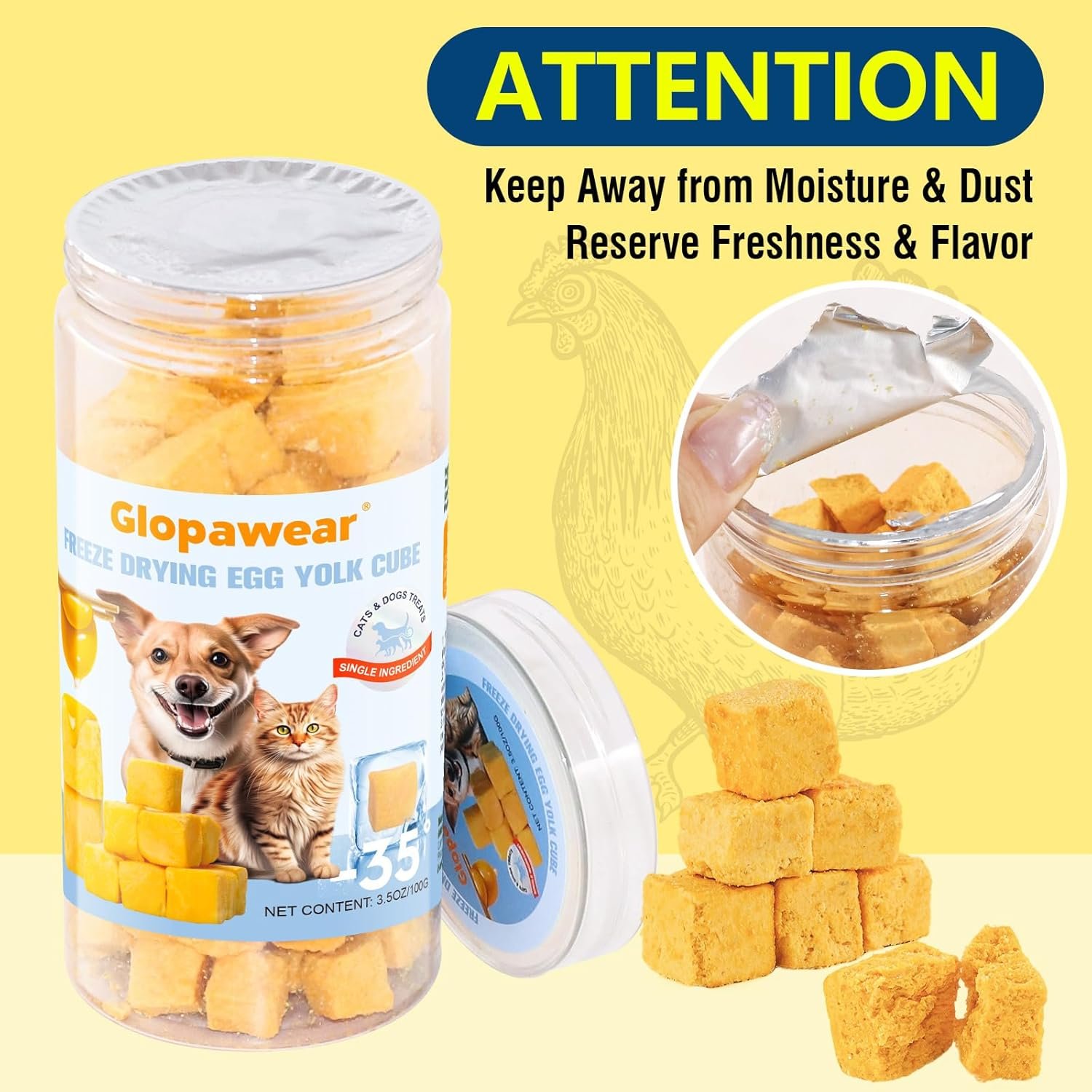 SINGLE-INGREDIENT PURITY – Glopawear freeze-dried treats contain just one ingredient: pure chicken egg yolk. A simple, natural snack perfect for both cats and dogs, with no additives, fillers, or artificial ingredients