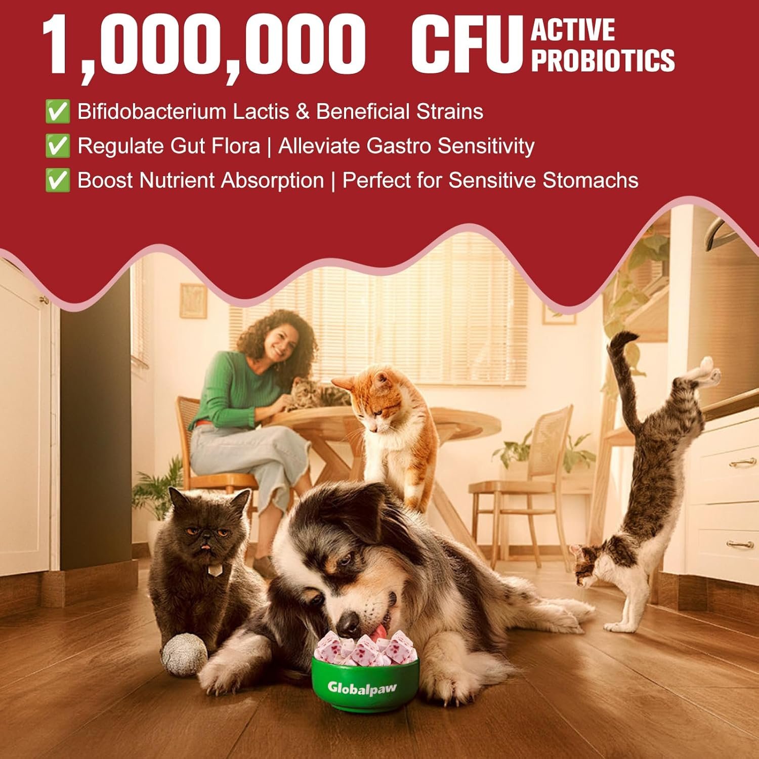 🦠 【1 Million CFU Active Probiotics – Say Goodbye to Tummy Troubles】:We added 1,000,000 CFU of Bifidobacterium lactis & other beneficial strains to every batch—targeted to regulate gut flora, alleviate gastrointestinal sensitivity, and boost nutrient absorption. Perfect for puppies/kittens over 3 months old, senior pets, or fur babies with soft stool issues. A healthy gut = a stronger immune system!