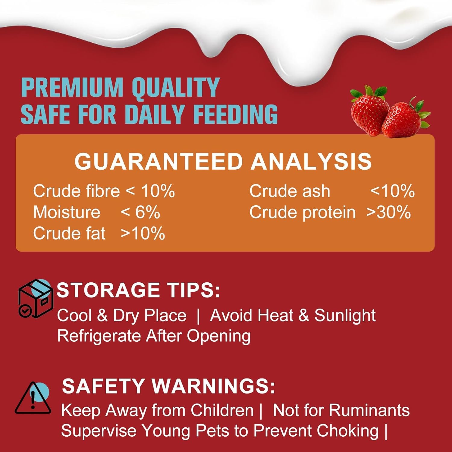 ✅ 【Safe, High-Quality & Easy to Store – Daily Healthy Treat You Can Trust】:Made with fermented milk, real strawberries. Guaranteed analysis: Crude Protein >30%, Crude Fat >10%—nutritious enough for daily feeding! Pro tip: Store in cool/dry place; refrigerate after opening to avoid moisture. Supervise young pets while eating to prevent choking—100% pet-safe, family-friendly!