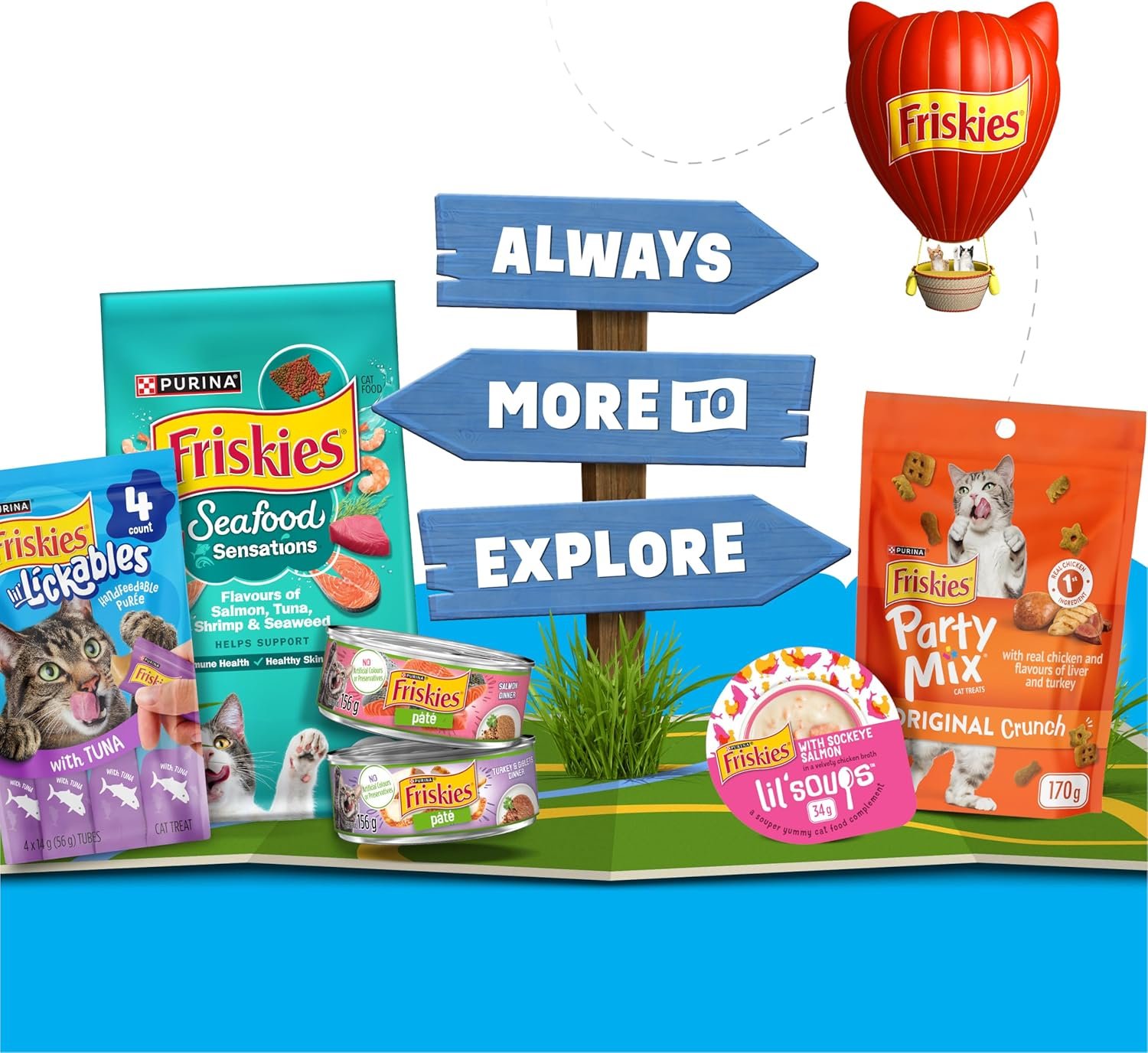 Wow your cat with a taste sensation packed in an easy-feed tube with Purina Friskies lil’ Lickables cat treats. Each tasty treat comes in a convenient squeezable tube with an easy-tear top—simply tear, squeeze, and watch your cat go wild with excitement at snack time. The cat treats are silky-smooth in a creamy puree with a lickable texture cats can’t resist. Open a squeezable cat treat and your favourite feline will come running for that delicious snack and stay for a cuddle creating a shared bonding moment between you and your cat. Made with real ocean whitefish or tuna, each tube measures 14 grams—the perfect size for a delicious snack time or to add a little extra flavour at mealtime. Each cat tube treat helps support healthy hydration with an irresistible flavour and texture that will keep them delighted every time you serve them a tube and purring with satisfaction as they lick and enjoy every last drop. Add more variety and check out Friskies lil’ Lickables with Chicken to keep your cat’s taste buds excited with delicious flavour and variety.