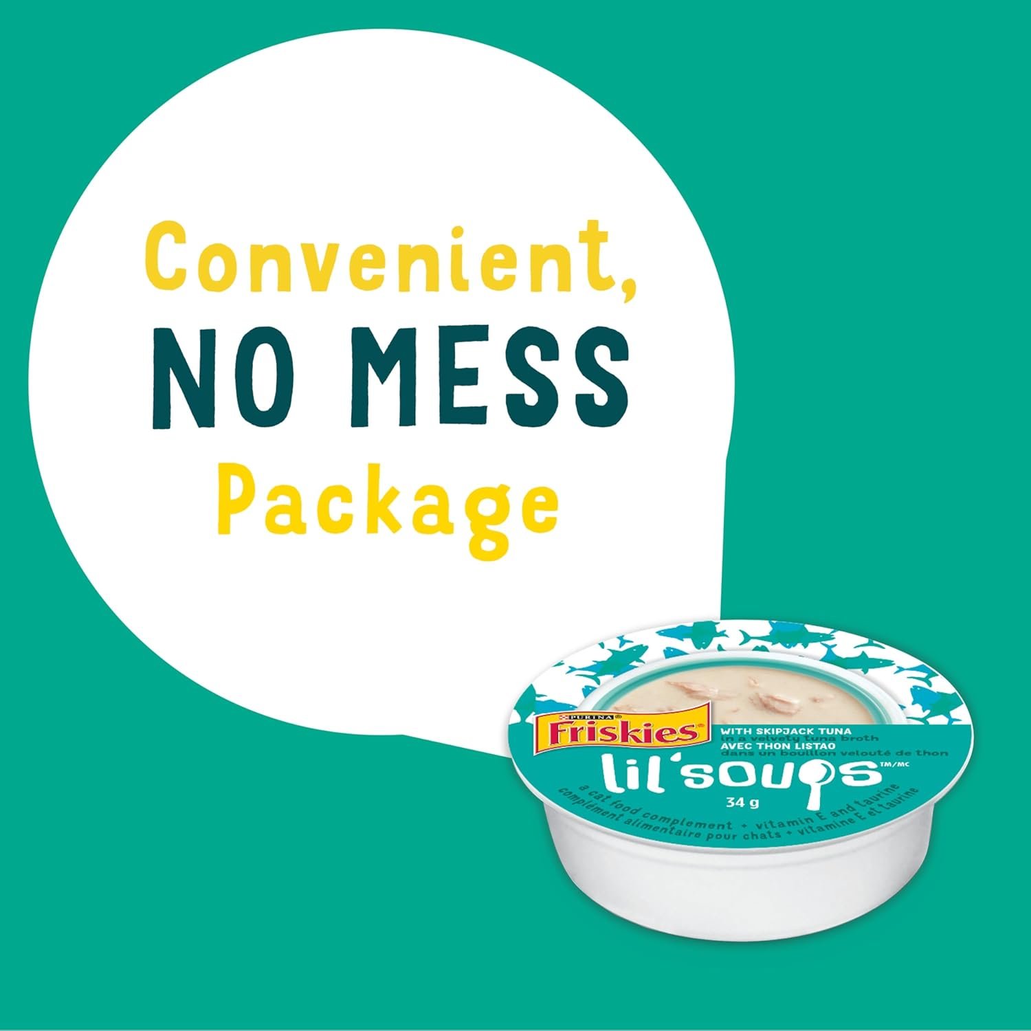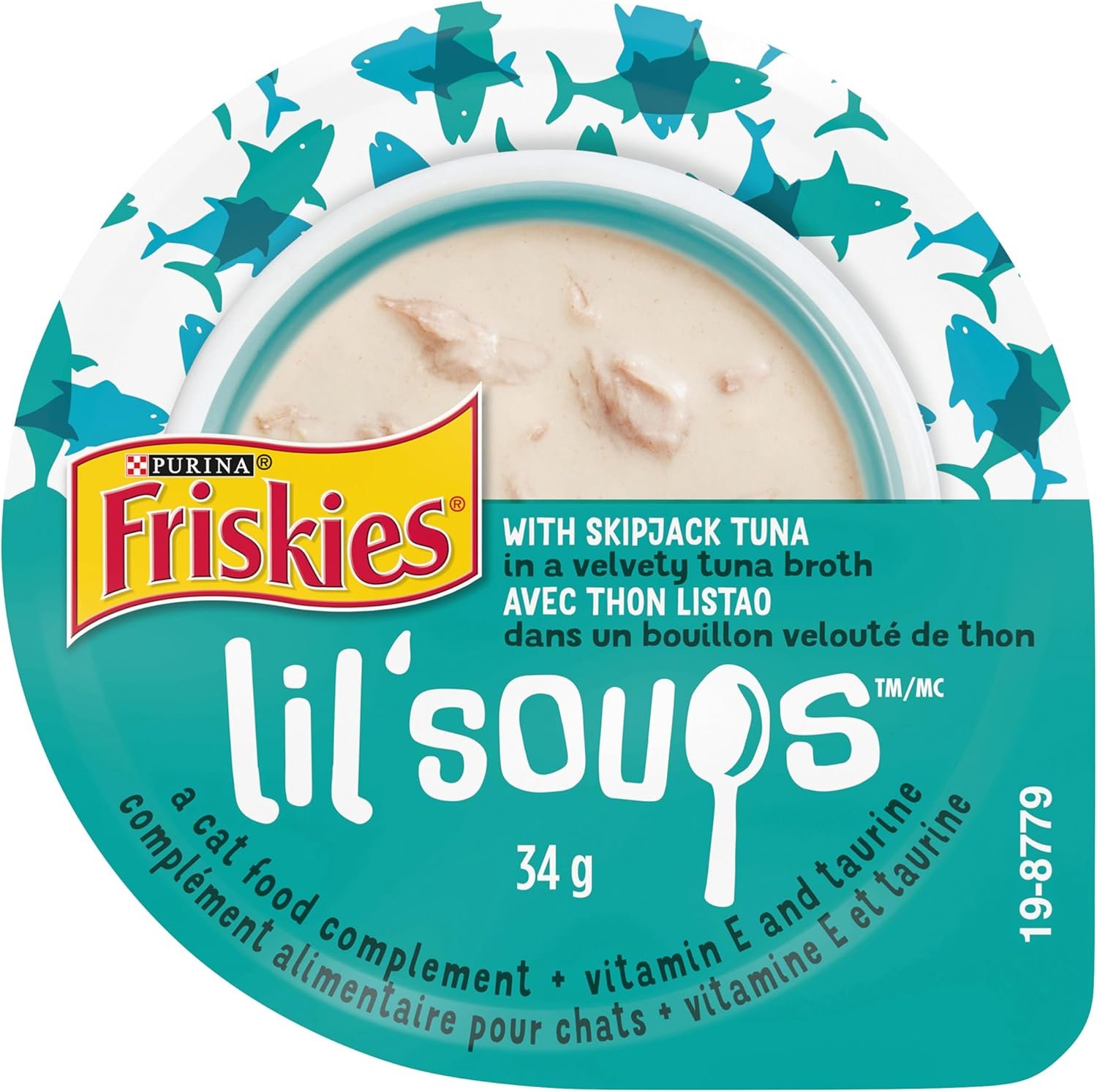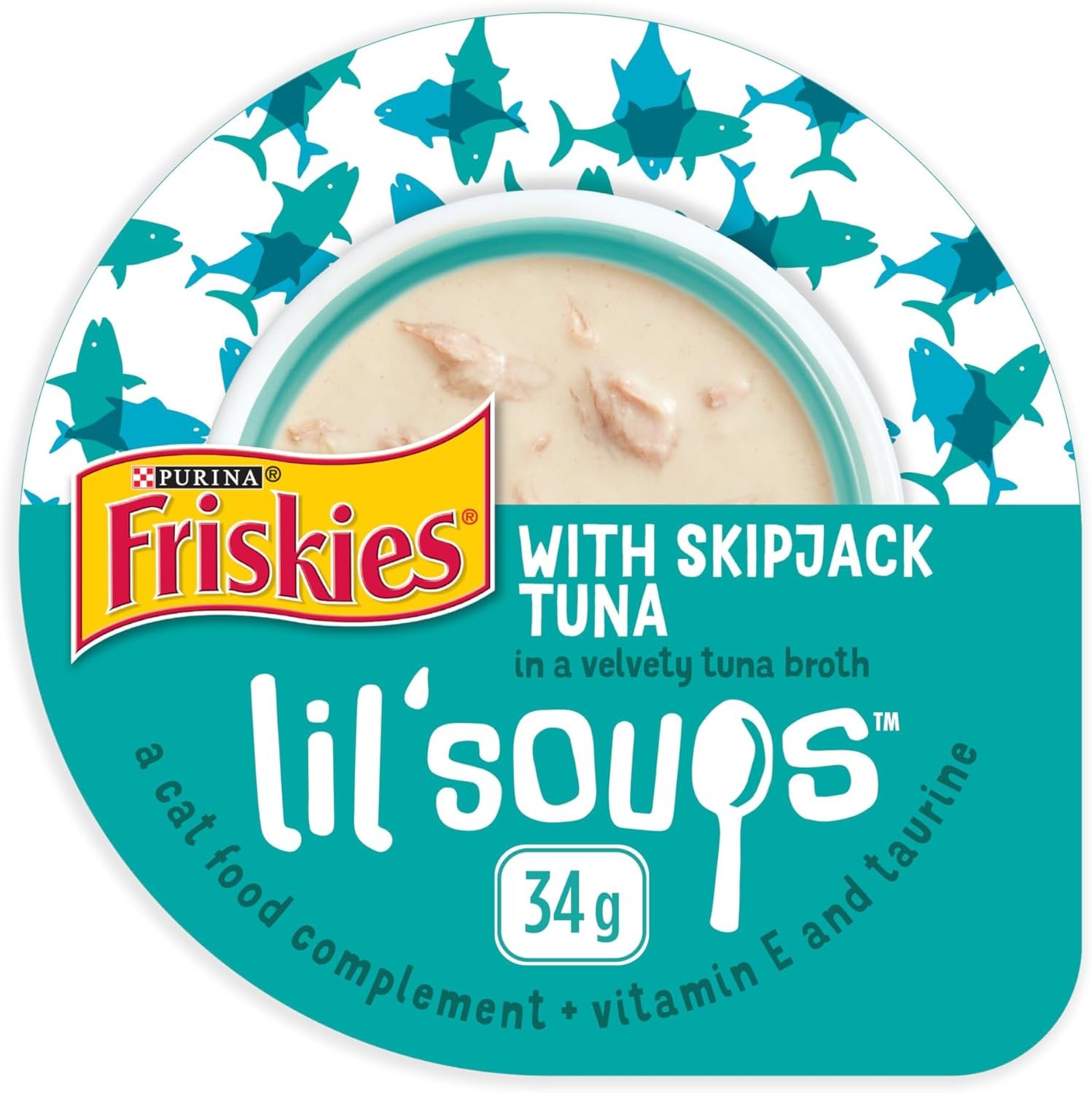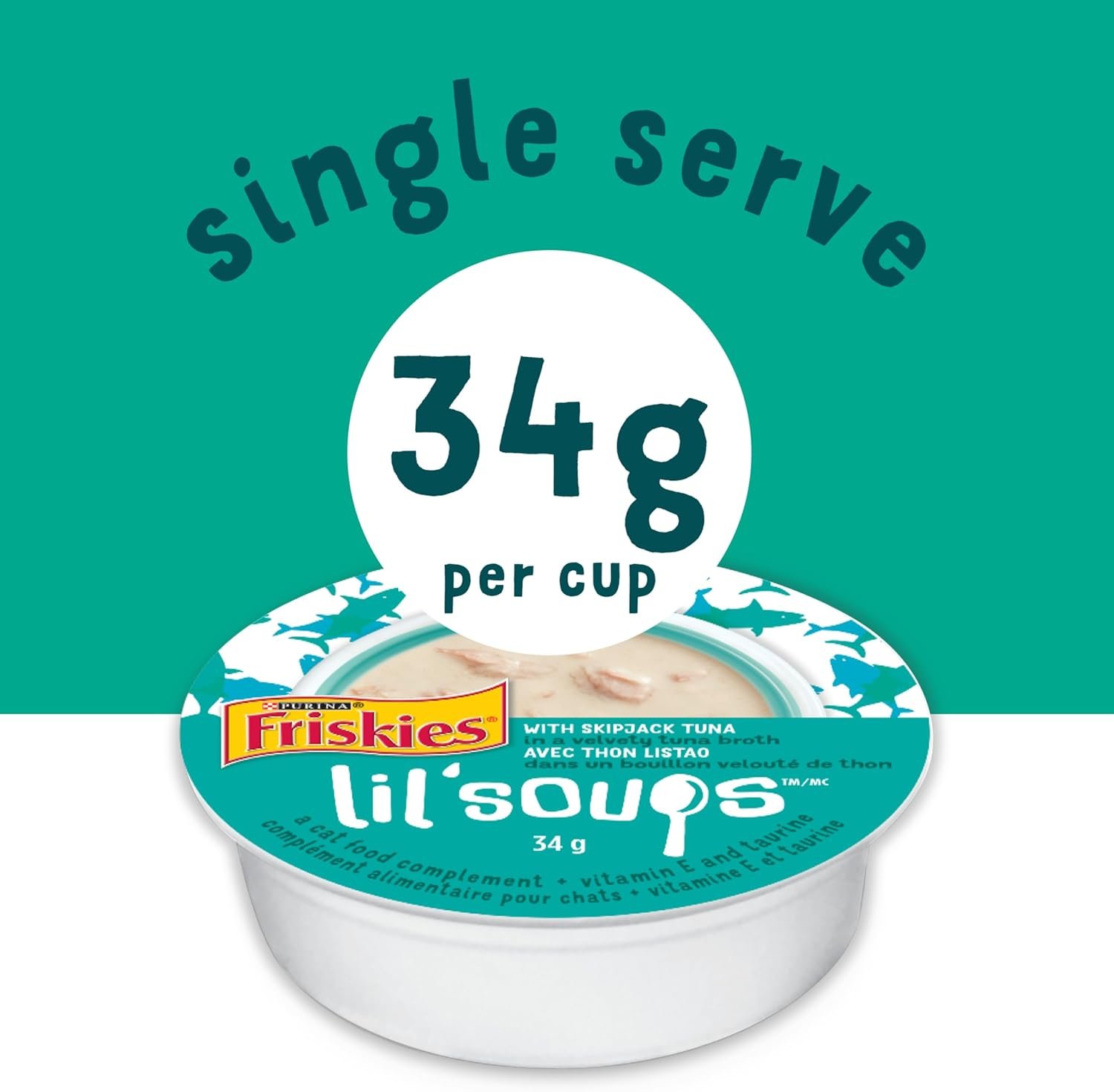Friskies Lil’ Soups Cat Food Complement, Skipjack Tuna – 34 g Cup (8 Pack)