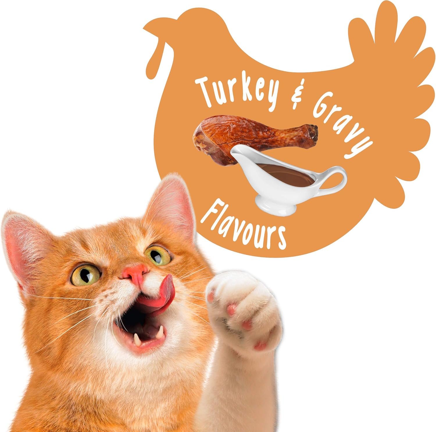 Gravy-Licious Turkey & Gravy Crunch treats offer a delicious taste of turkey and gravy that will keep your cat engaged with their fun shapes and colors.